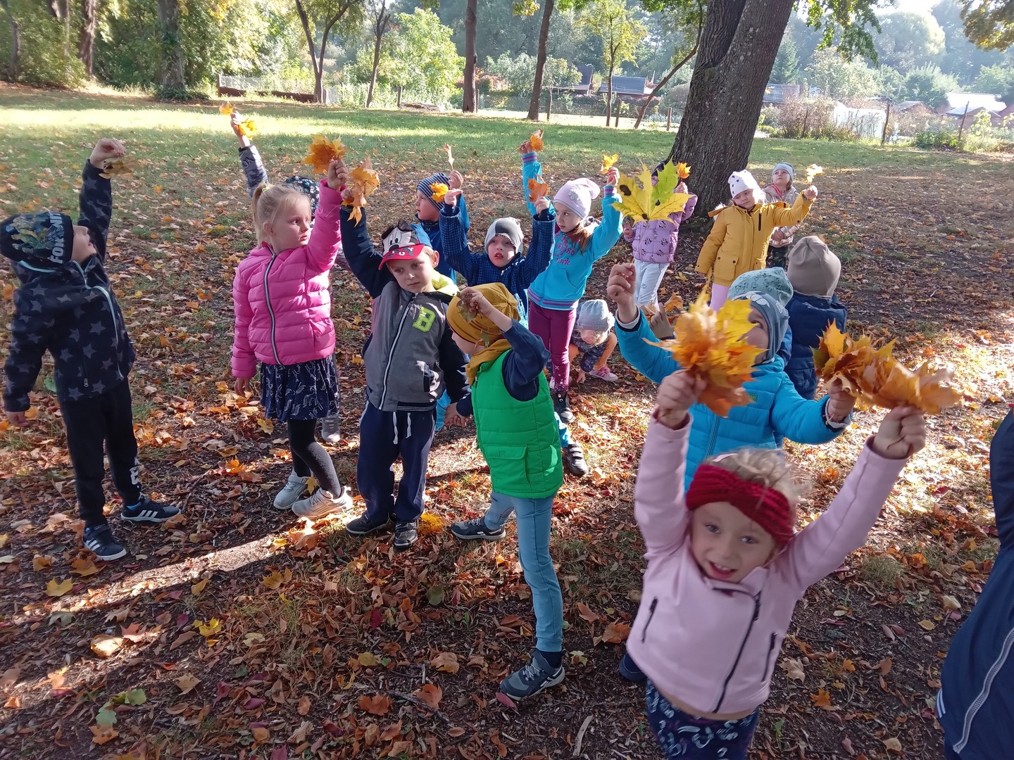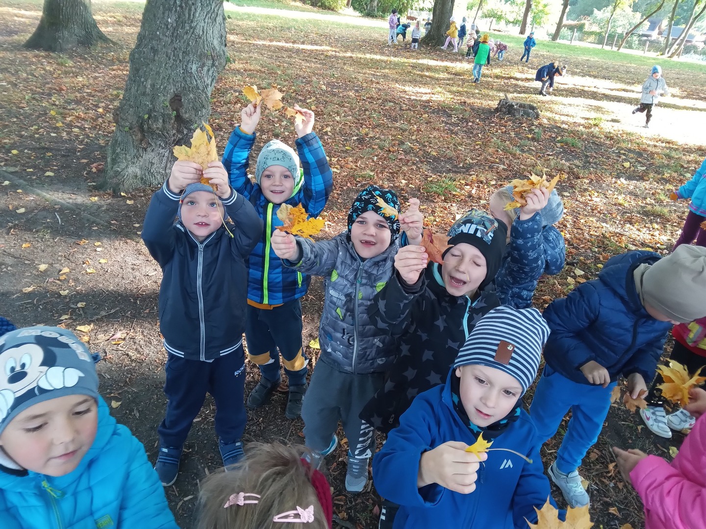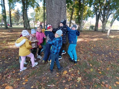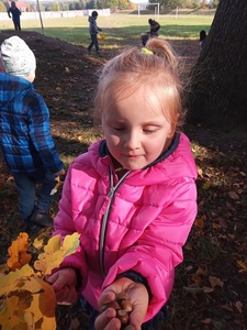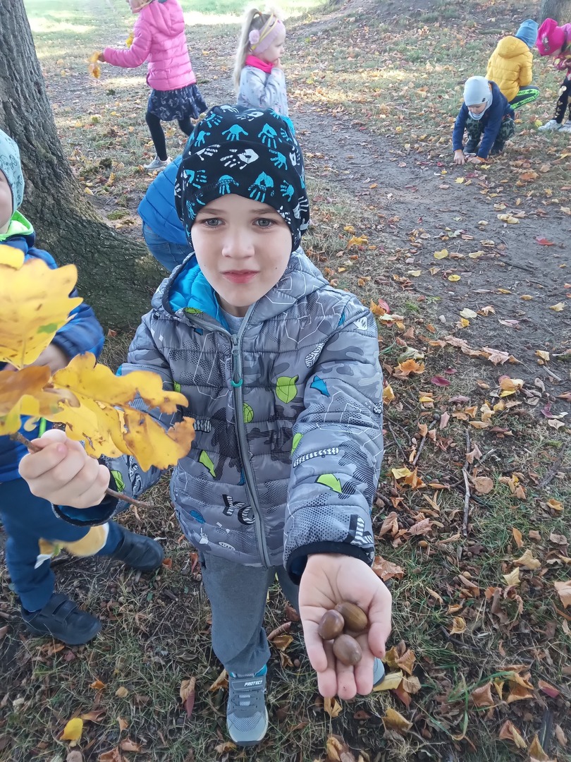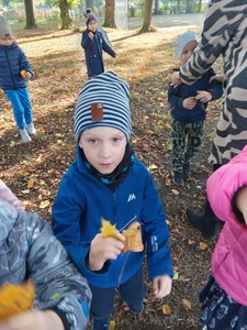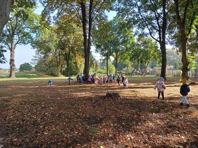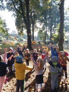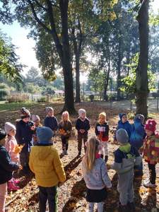 Dnia 30 września Biedronki i Deszczowe Kropelki wybrały się na wycieczkę do parku. Pogoda nam sprzyjała, a park to piękne miejsce, szczególnie, gdy jest zaczarowane kolorami jesieni. Przedszkolaki obserwowały zmiany zachodzące w przyrodzie jesienią, rozpoznawały drzewa i ich owoce, a także słuchały odgłosów przyrody. Do przedszkola wróciły z pięknymi bukietami jesiennych liści.