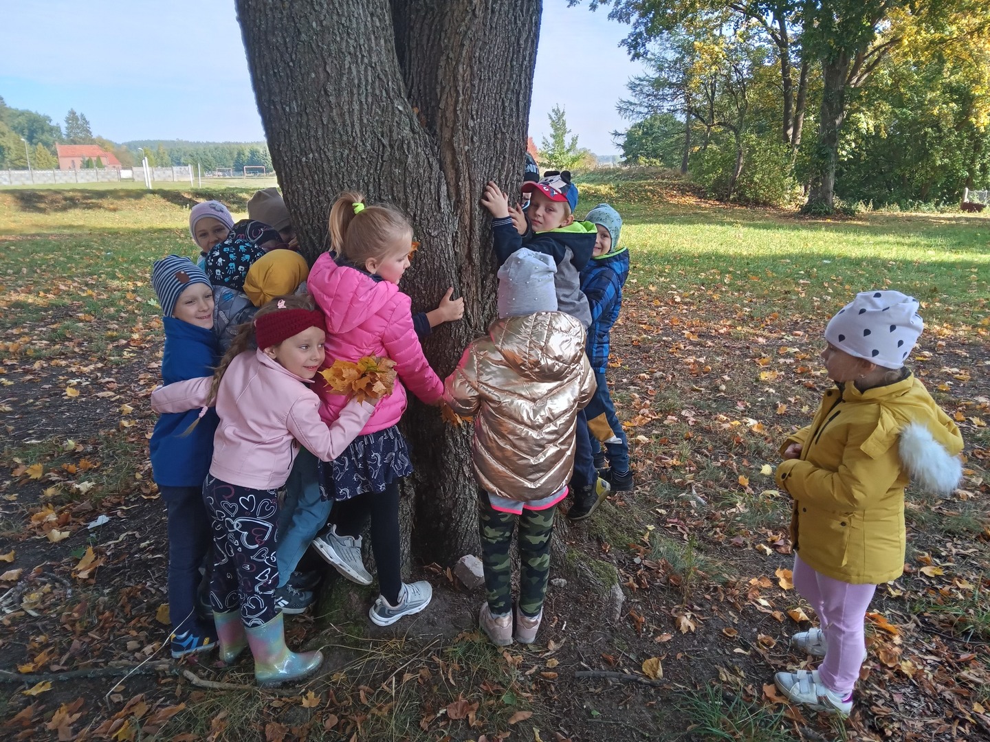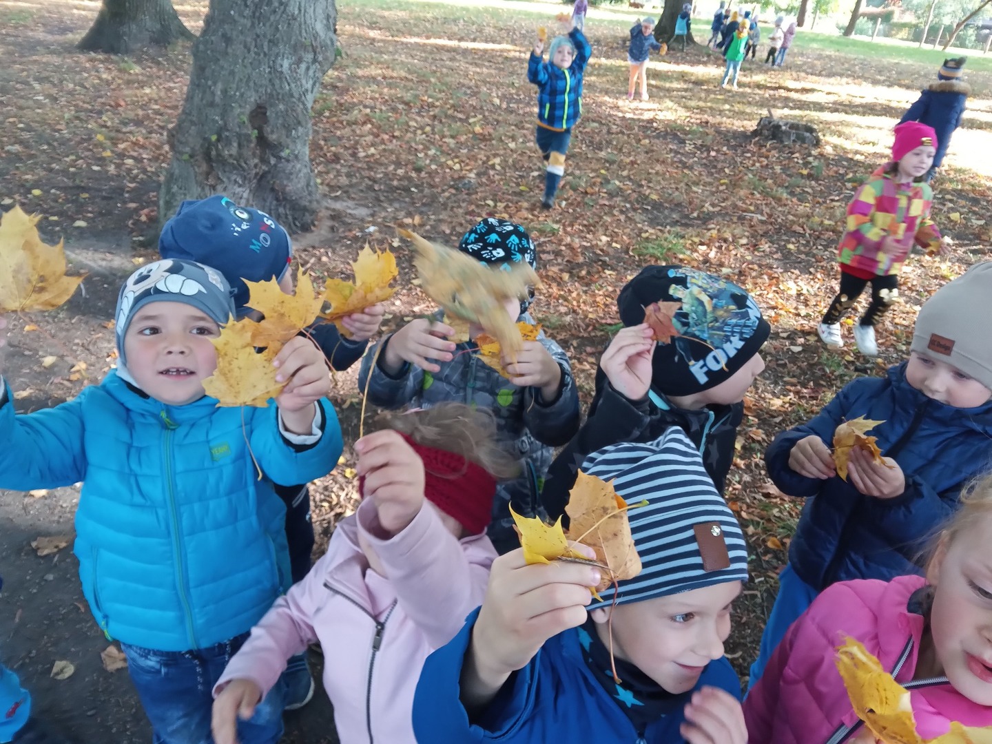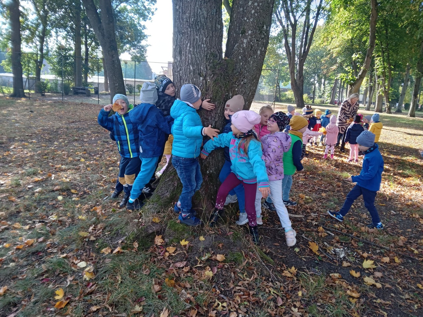 Dnia 30 września Biedronki i Deszczowe Kropelki wybrały się na wycieczkę do parku. Pogoda nam sprzyjała, a park to piękne miejsce, szczególnie, gdy jest zaczarowane kolorami jesieni. Przedszkolaki obserwowały zmiany zachodzące w przyrodzie jesienią, rozpoznawały drzewa i ich owoce, a także słuchały odgłosów przyrody. Do przedszkola wróciły z pięknymi bukietami jesiennych liści.