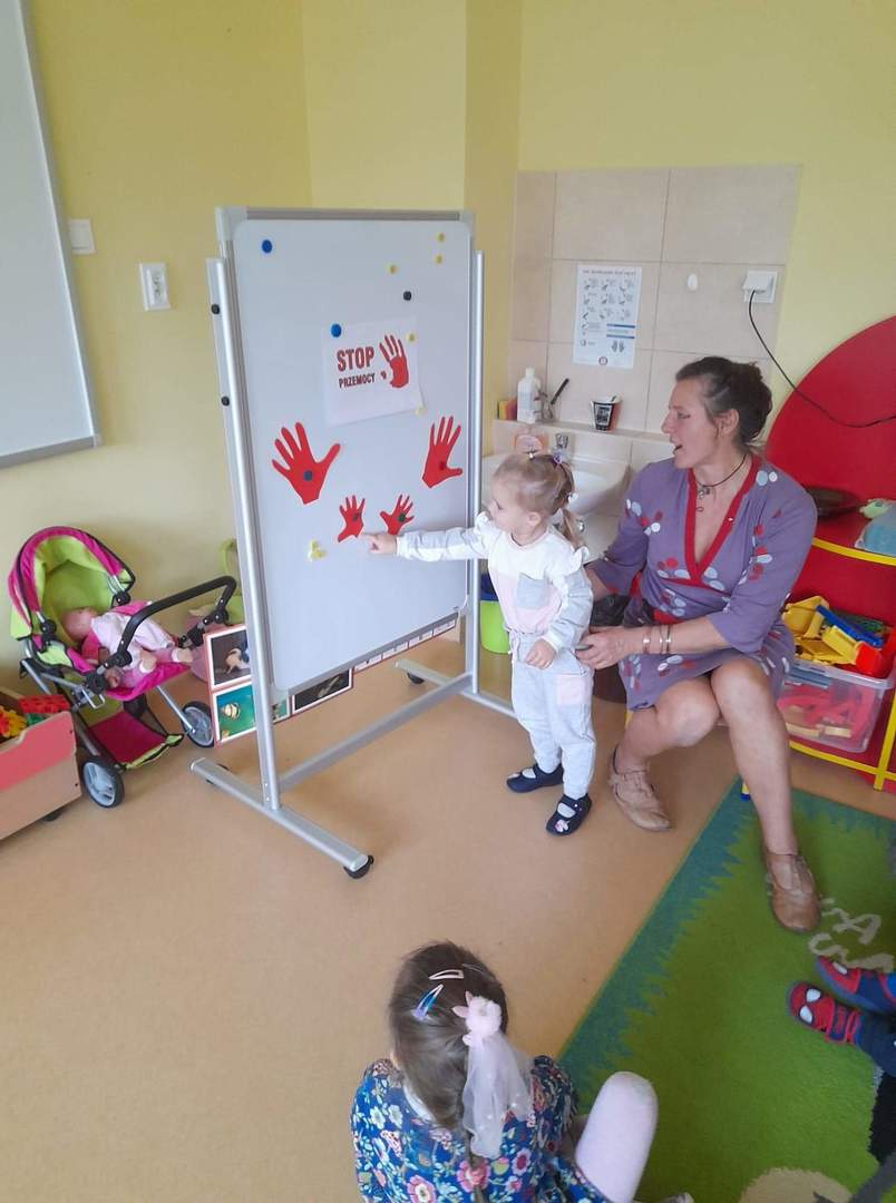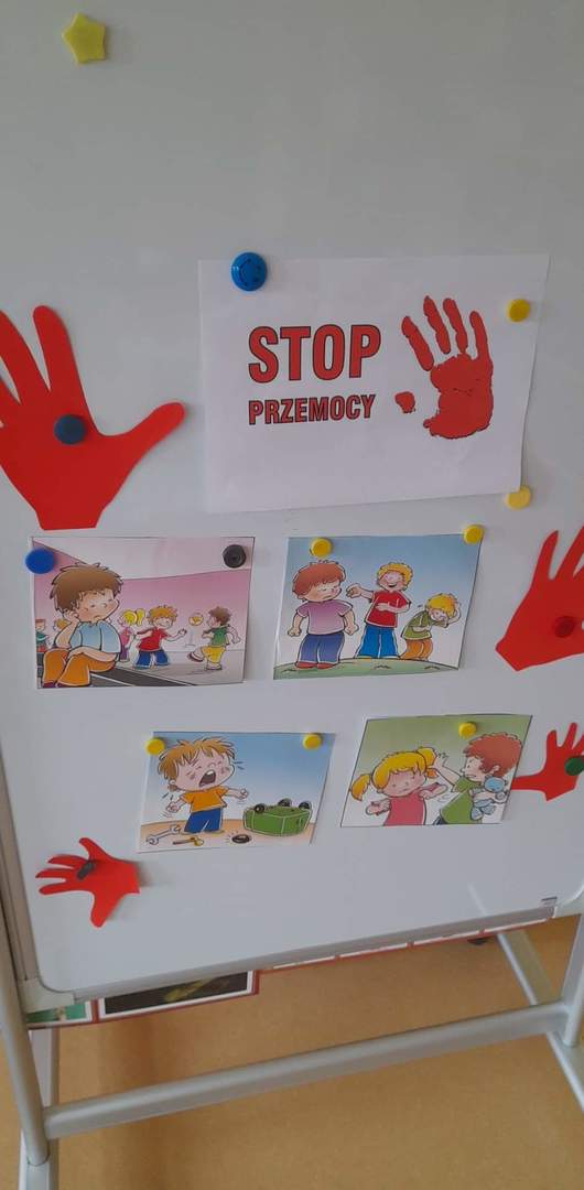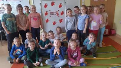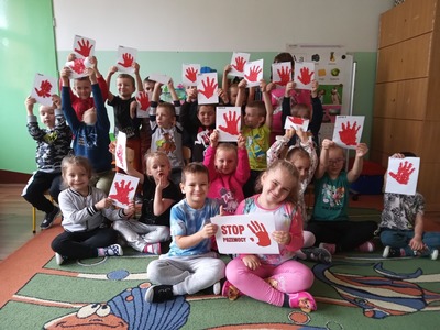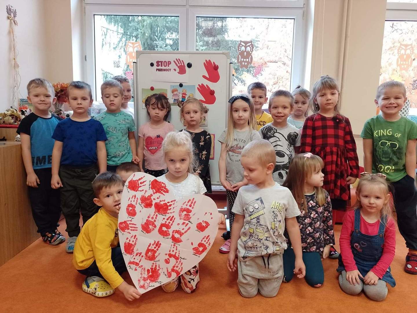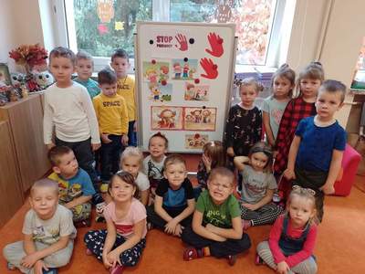 3 października 2022r. odbył się w przedszkolu "Międzynarodowy Dzień Bez Przemocy", który corocznie obchodzony jest 2 października. Tego dnia w każdej grupie odbyły się pogadanki z dziećmi dotyczące sposobów radzenia sobie w trudnych sytuacjach bez stosowania przemocy. Podczas wspólnych zabaw przedszkolaki uczyły się okazywania szacunku, tolerancji, rozpoznawania emocji oraz współpracy.