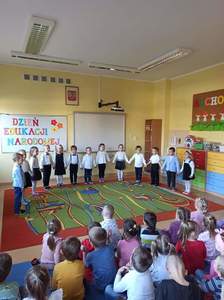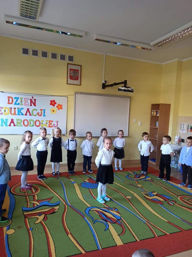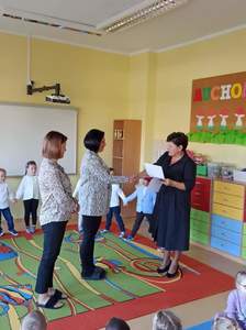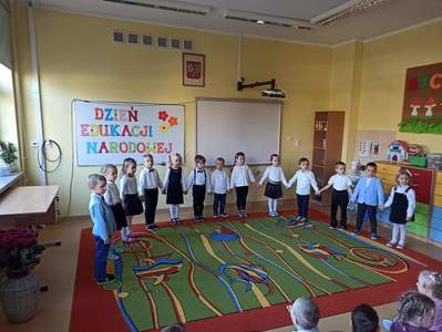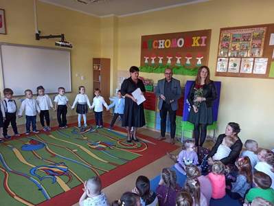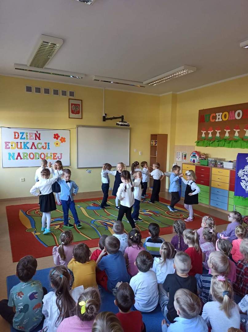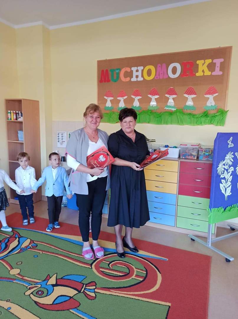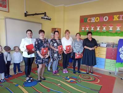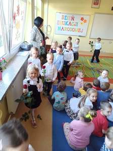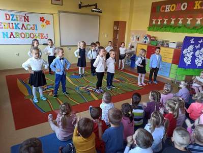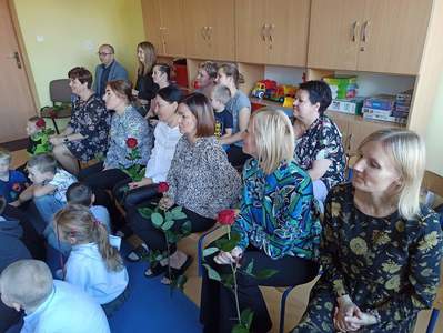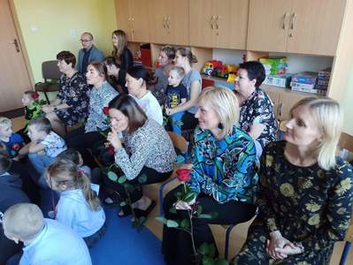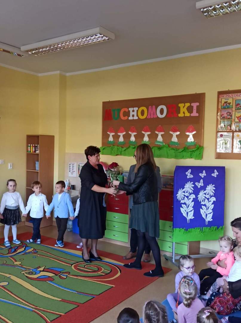 Dzień Edukacji Narodowej to wyjątkowy dzień dla wszystkich pracowników oświaty. Nasze przedszkolaki również chciały podziękować w tym dniu, swoim ukochanym paniom i pracownikom przedszkola za uśmiech, życzliwość i trud włożony w ich wychowanie, za opiekę, dobre rady, czyste sale, wszelkie naprawy oraz smaczne posiłki. Słowa tych podziękowań zawarte były w wierszach, piosenkach i tańcach, przygotowanych przez dzieci z grupy Muchomorków pod kierunkiem pani Kornelii Borowiec. Za ciekawy i udany występ przedszkolaki zostały nagrodzone gromkimi brawami. Po części artystycznej, głos zabrali dyrektor Halina Rogowska oraz zaproszeni goście, Dariusz Bartosik - zastępca Burmistrza Mirosławca i Monika Stąporek - Sekretarz Gminy Mirosławiec, dziękując za serce, które wszyscy pracownicy wkładają w swoją pracę, za osiągnięcia, za kreatywność, entuzjazm i uśmiech na twarzy. Tego dnia przedszkolaki otrzymały też ważny przekaz dotyczący tego, że każdy ma swoje święto i należy w tym dniu okazać pamięć i szacunek.