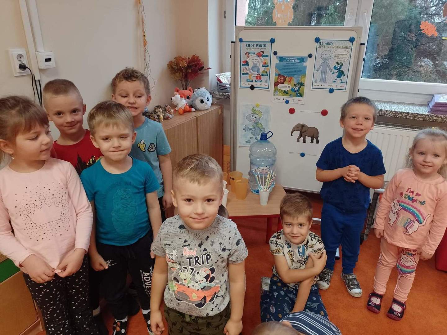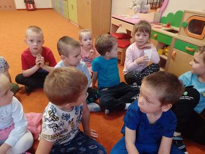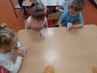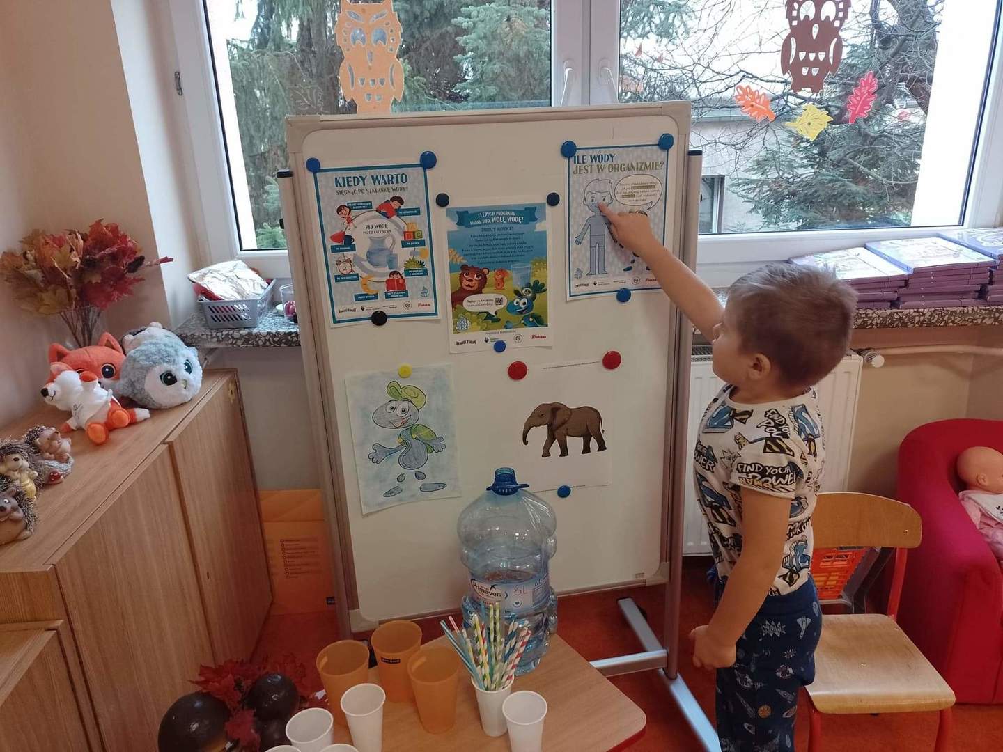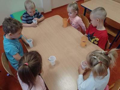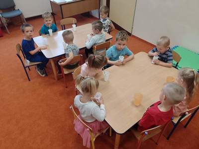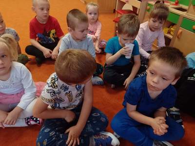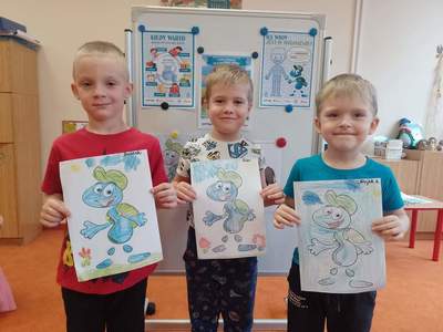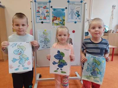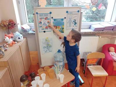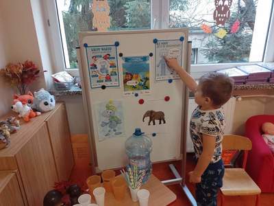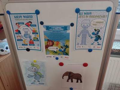 W środę, 19 października przedszkolaki z grupy "Deszczowe Kropelki" realizowały program "Mamo, Tato wolę wodę". Dzieci dowiedziały się o tym, jak ważny jest nawyk picia wody, jakie znaczenie ma woda w życiu zwierząt, rodzin i ludzi. Poznały Zrdojka, wykonały pracę plastyczną i dowiedziały się wiele ciekawych rzeczy o słoniach.