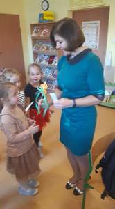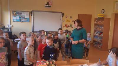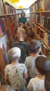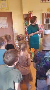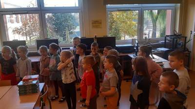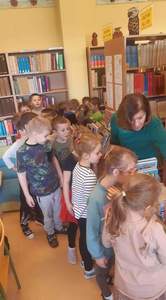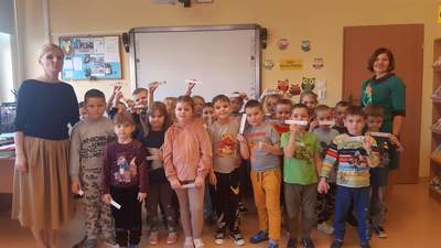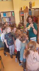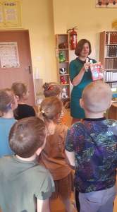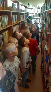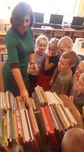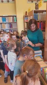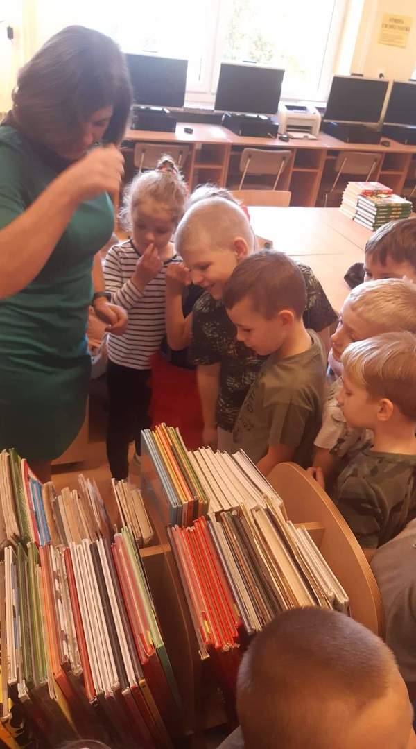 Dnia 22 października najstarsze przedszkolaki z grupy Biedronki i Tęczowe Nutki odwiedziły bibliotekę w Szkole Podstawowej w Mirosławcu. Celem tej wizyty było zapoznanie dzieci ze środowiskiem szkolnym. Pani Kinga Świeczkowska opowiedziała przedszkolakom jak funkcjonuje biblioteka i kiedy uczeń powinien z niej korzystać. Dzieci z zainteresowaniem słuchały a potem zadawały wiele pytań. Na koniec Pani Kinga obdarowała każdego uczestnika spotkania zakładką do książki, za co serdecznie dziękujemy.