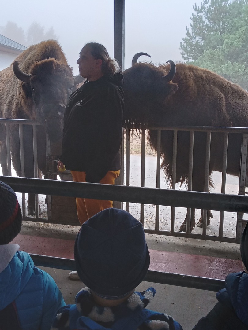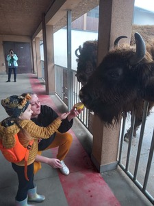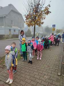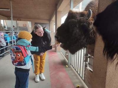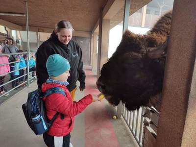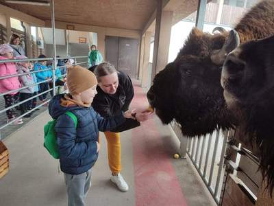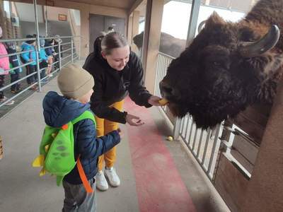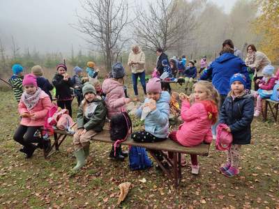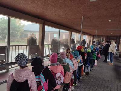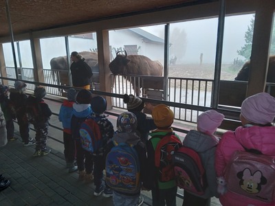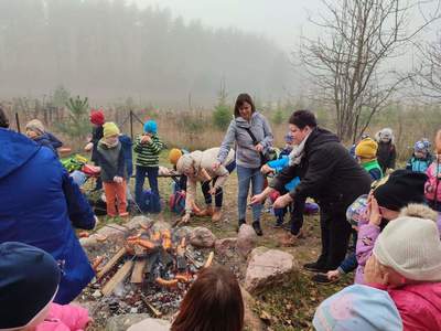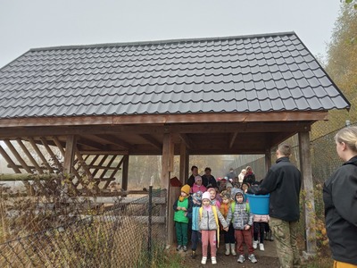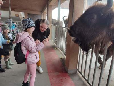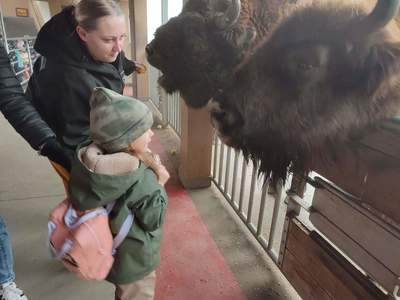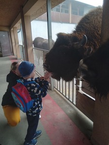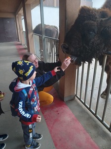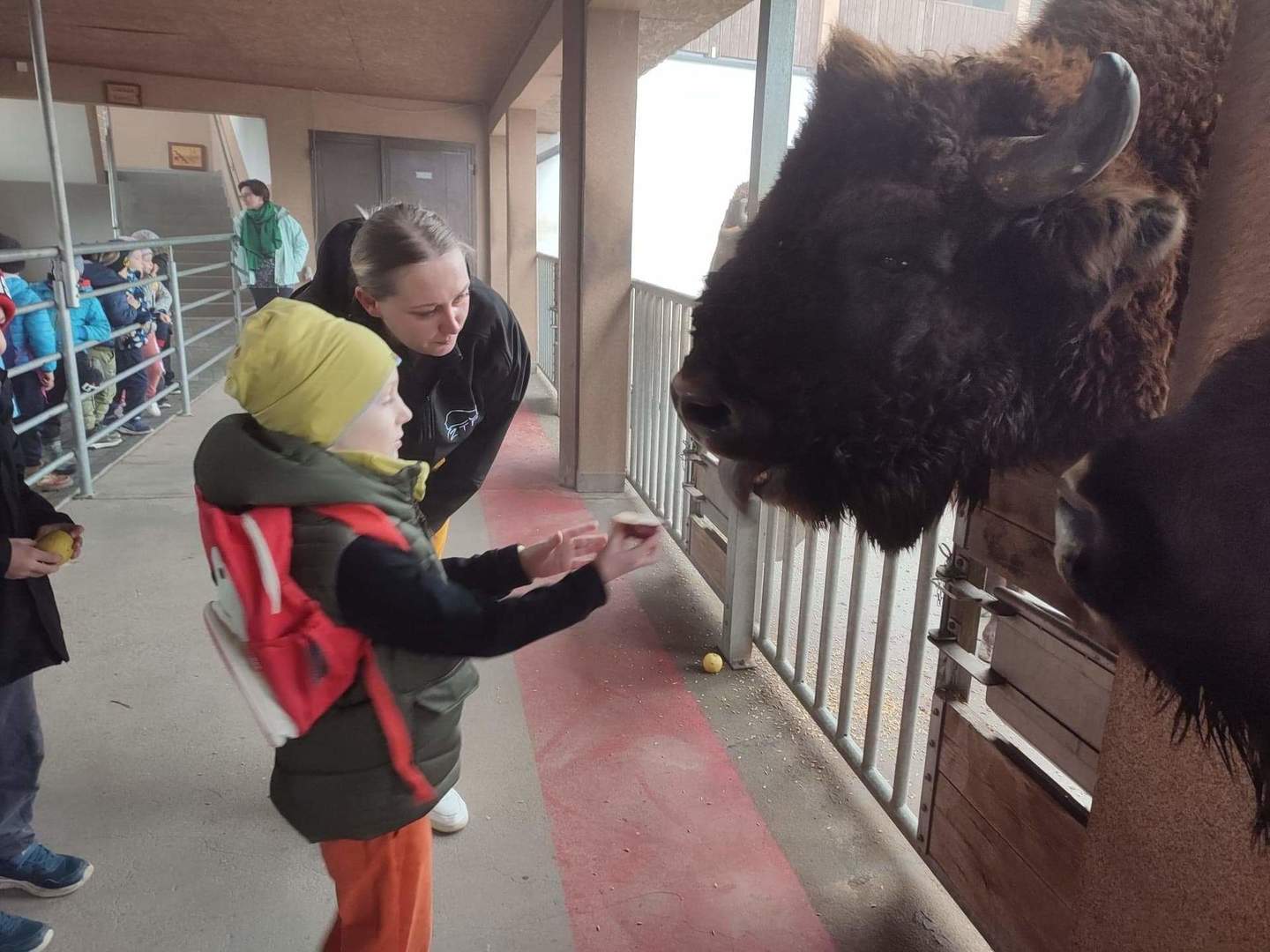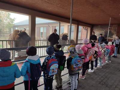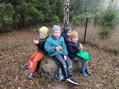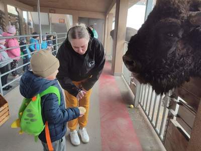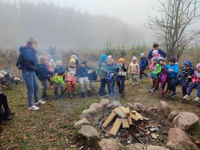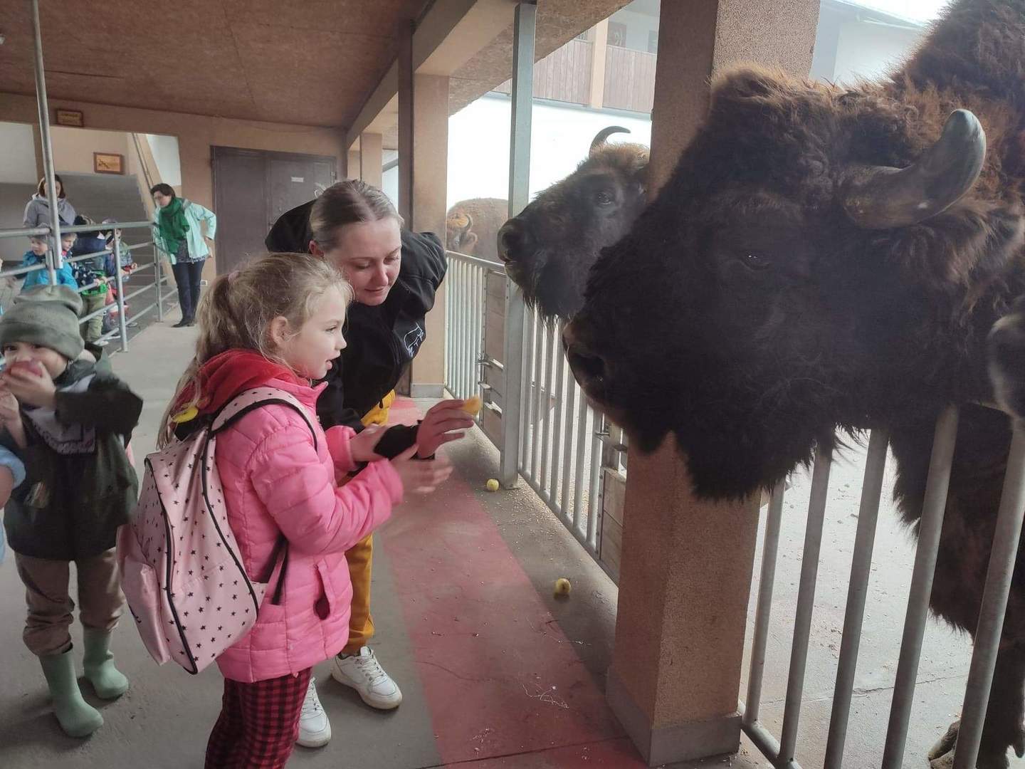 Edukacja w terenie niezwykle pobudza chęć zdobywania wiedzy, ale rozwija też szacunek do przyrody, ukazując jej niesamowite piękno i potrzebę pielęgnacji zwłaszcza zagrożonych gatunków. Dlatego też, 26 października Tęczowe Nutki i Biedronki uczestniczyły w wycieczce do Dzikiej Zagrody w Jabłonowie, której celem było zapoznanie dzieci z zagrodą i jej podopiecznymi. Już po wyjściu z autokaru dzieci wyraziły swój zachwyt i wielkie podekscytowanie. A czekało na nas wiele atrakcji…rozpoczęliśmy od spotkania z "prawdziwymi" żubrami. Dzieci mogły z bliska obserwować ich wygląd, dowiedziały się jakie mają imiona, poznały tajniki ich życia, a także co lubią jeść i jak się je karmi. Z pomocą Pani przewodniczki przedszkolaki z radością karmiły żubry jabłkami. Kolejnym punktem naszej wycieczki był spacer ścieżką edukacyjną i spotkanie z rysiem. Dzieci nie kryły emocji, kiedy zobaczyły piękne "koty" z pędzelkami na uszach. Z wielkim zainteresowaniem słuchały kolejnych ciekawostek o drapieżnikach. Wycieczkę zakończyliśmy przy ognisku. Dzieci ze smakiem zjadły upieczone kiełbaski i aktywnie spędziły czas na świeżym powietrzu. Zmęczeni, ale pełni wrażeń pożegnaliśmy pracowników zagrody oraz zwierzaki i wróciliśmy bezpiecznie do przedszkola.