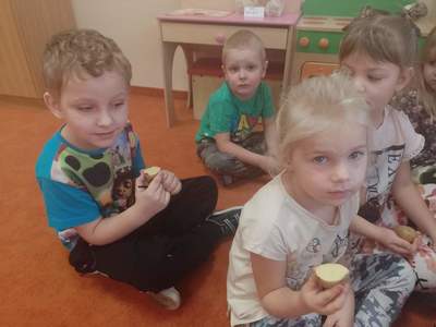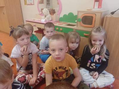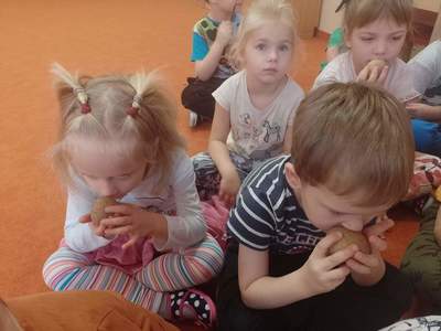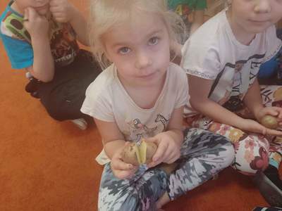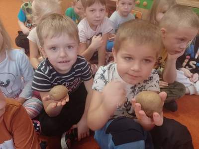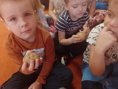 W piątek 28 października dzieci z grupy Deszczowe Kropelki zrealizowały zadanie październikowe z projektu pt.:"Wróbelka Elemelka poznajemy, z nim przygody dzielić chcemy." Wysłuchały opowiadania, zdobyły wiadomości na temat ziemniaka- "Ziemniak na różne sposoby"- poznały nazwy ziemniaków w różnych regionach oraz potrawy.