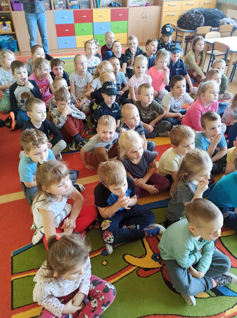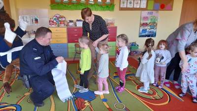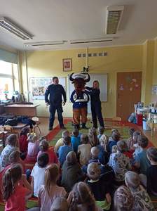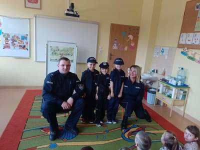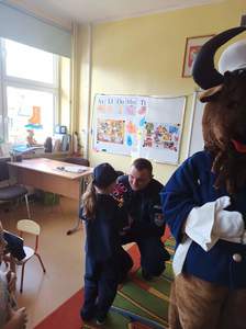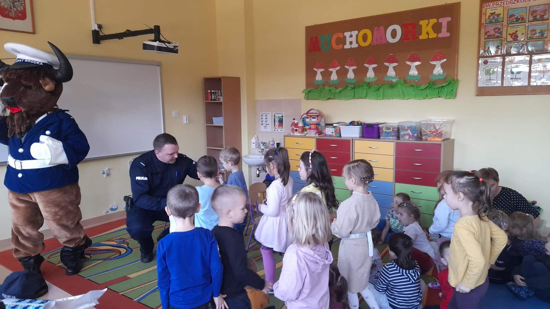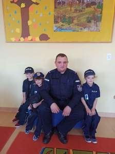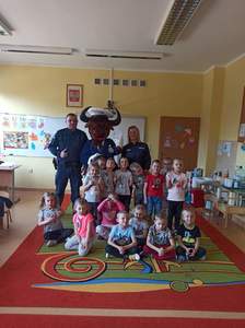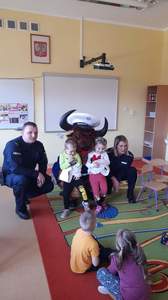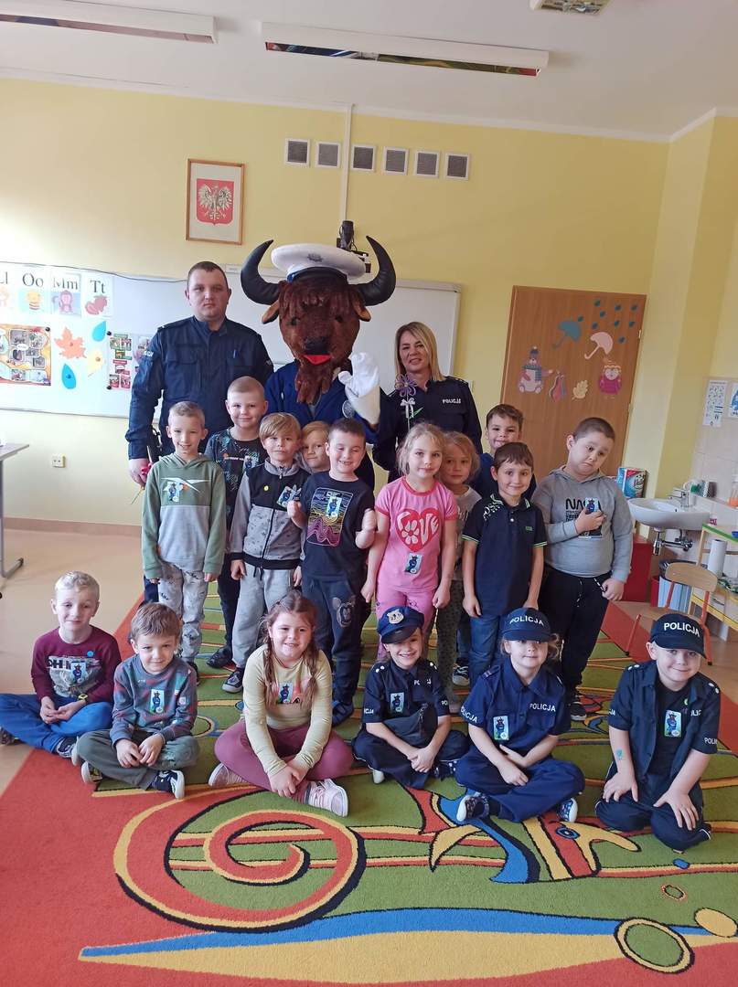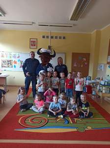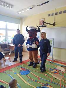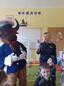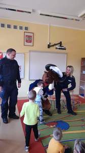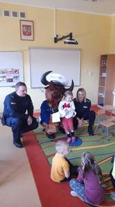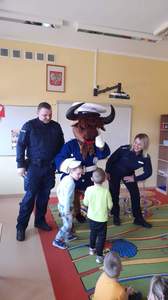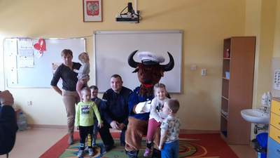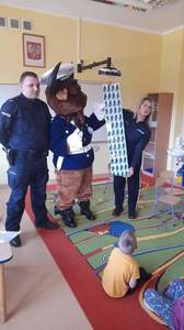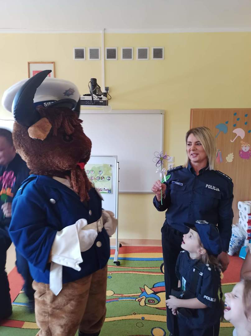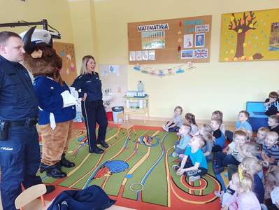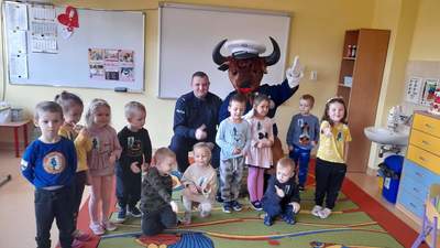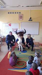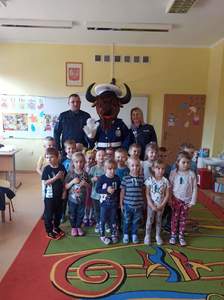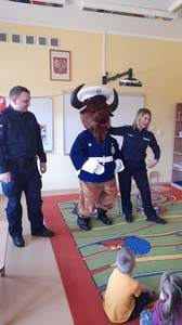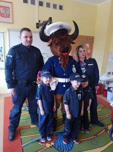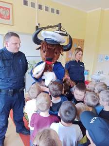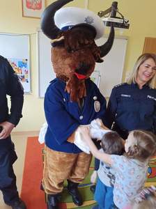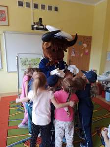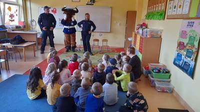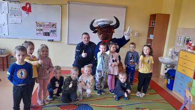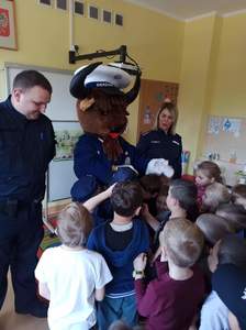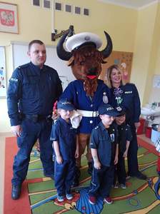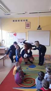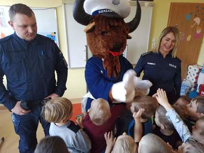 3 listopada, dzieci z Przedszkola "Słoneczko" w Mirosławcu, spotkały się z policjantami i pluszową maskotką Sierżantem Bródką z KPP w Wałczu. Maskotka wymyślona przed laty, właśnie przez najmłodszych w konkursie plastycznym, towarzyszy policjantom podczas przekazywania dzieciom ważnych treści. Żubrzyk jest starszy, a przez to mądrzejszy i co ważne dzieci mogą go poprosić o radę, przytulić się i taką możliwość miały też przedszkolaki. Dzieci zapoznały się z mundurem policjanta drogówki, bo właśnie taki mundur nosi maskotka i poznały różnice w ubiorze policjanta prewencji. Przedszkolaki dowiedziały się dlaczego policjanci drogówki noszą białe czapki i do czego służą im białe rękawice. Policjanci przypomnieli również dzieciom o właściwych zachowaniach na drodze, w przedszkolu i w czasie wolnym. Ważnym tematem spotkania była nauka zachowań w przypadku kontaktu z osobą nieznajomą. Na koniec oczywiście nie zabrakło pamiątkowych zdjęć. Spotkanie z pluszakiem w policyjnym mundurze wywołało dużo radości i uśmiechów na małych buziach.