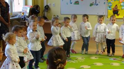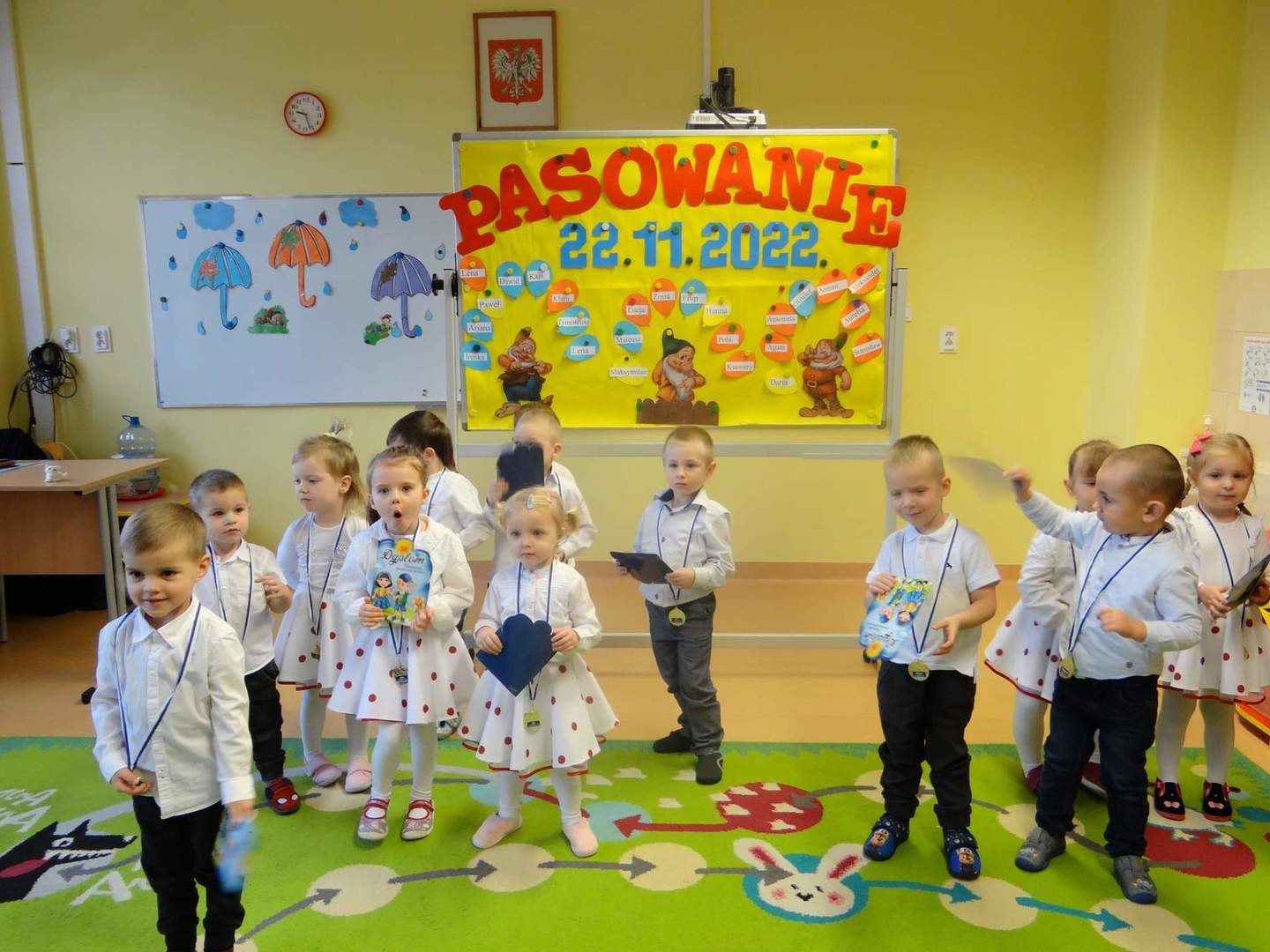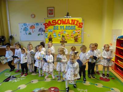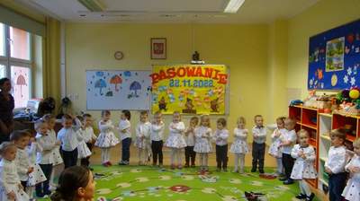 Dzień 22 listopada pozostanie na długo w pamięci dzieci 3-letnich z Przedszkola "Słoneczko" w Mirosławcu. Tego właśnie dnia odbyła się pierwsza ważna przedszkolna uroczystość – Pasowanie na Przedszkolaka. W uroczystości brali udział rodzice "Krasnoludków" oraz Pani Dyrektor. Uroczystość rozpoczęła się od powitania gości i przedstawienia krótkiej części artystycznej, w której maluszki zaprezentowały swoje umiejętności – dając tym samym dowód, jak dużo już potrafią. Były więc piosenki, wierszyki, zabawy ruchowe i taniec. Po części artystycznej, nastąpiło złożenie ślubowania przez  rodziców, którzy stali się Rodzicami Przedszkolaka. Następnie Pani Dyrektor  dokonała uroczystego pasowania każdego dziecka na przedszkolaka. Na pamiątkę tego ważnego wydarzenia każdy przedszkolak otrzymał dyplomik pasowania, pamiątkowy medal oraz słodki upominek. Dzieci obiecały: zgodnie bawić się w przedszkolu, przychodzić każdego dnia z uśmiechem, słuchać pani i pomagać kolegom, być dzielnym przedszkolakiem. Uroczystość ta pozwoliła rodzicom, nauczycielkom i dzieciom zintegrować się. Była również świetną okazją do poznania, nabytych przez 2 miesiące uczęszczania do przedszkola, umiejętności dzieci. Było to również oficjalne zakończenie i ewaluacja programu adaptacyjnego, który odbywał się w przedszkolu. Teraz dzieci z dumą mogą powiedzieć – Mamo, tato – jestem przedszkolakiem!