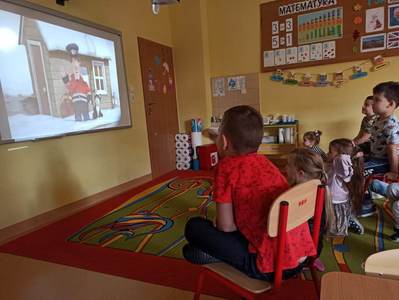 18 listopada dzieci z grupy "Tęczowe Nutki" zrealizowały drugie zadanie z projektu edukacyjnego "Europa i ja". Tym razem, w ramach poszerzania wiedzy o Wielkiej Brytanii dzieci obejrzały popularne bajki dla dzieci. Starszaki oglądały 3 bajki - "Listonosz Pat", "Monkey see, Monkey do" oraz "Przygody Misia Paddingtona" - wszystkie w języku angielskim - przedszkolaki ćwiczyły tym samym globalne rozumienie języka angielskiego. Dzieci były zadumione i zadowolone jednocześnie ponieważ okazało się, że rozumiały wiele słów.