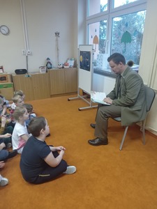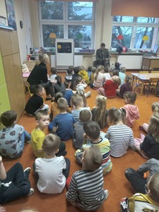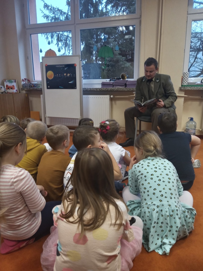 29 listopada odbyło się w przedszkolu spotkanie z cyklu "Rodzic czyta - dziecko słucha" w ramach realizacji Narodowego Programu Rozwoju Czytelnictwa, w którym uczestniczyły grupy "Deszczowe Kropelki", "Tęczowe Nutki" i "Biedronki". Z tej okazji zaproszony został Pan Hubert - tata Michała i Kamila, który przeczytał dzieciom opowiadanie pt. "Wiewiórka Wiola" z książki Renaty Piątkowskiej "Gang swojaków". Przedszkolaki z wielkim zainteresowaniem słuchały o rozterkach wiewiórki. Już nie mogą doczekać się następnego spotkania z książką...Dziękujemy Panu Hubertowi za miłe spotkanie.