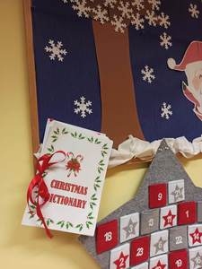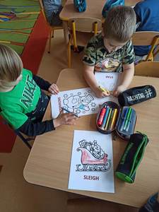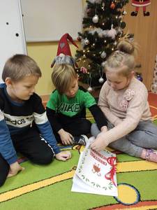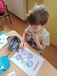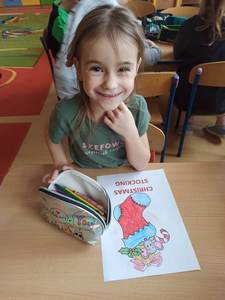 8 grudnia dzieci z grupy "Tęczowe Nutki" zrealizowały trzecie zadanie z projektu edukacyjnego "Europa i ja". Zadanie polegało na wykonaniu słowniczka obrazkowego. Przedszkolaki wspólnymi siłami stworzyły przepiękny słownik o tematyce świątecznej. Dzieci utrwalały znane sobie słownictwo dotyczące świąt Bożego Narodzenia oraz poznały wiele nowych słówek. Przedszkolaki bardzo zaangażowały się w wykonanie każdej ilustracji a potem z wielką radością i ciekawością oglądały wspólnie wykonaną książeczkę.