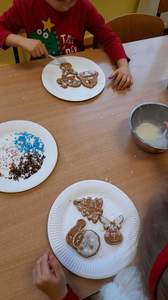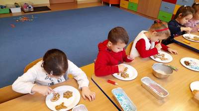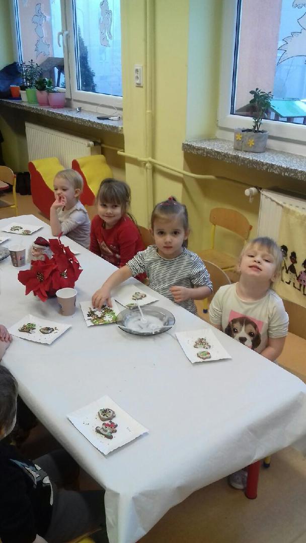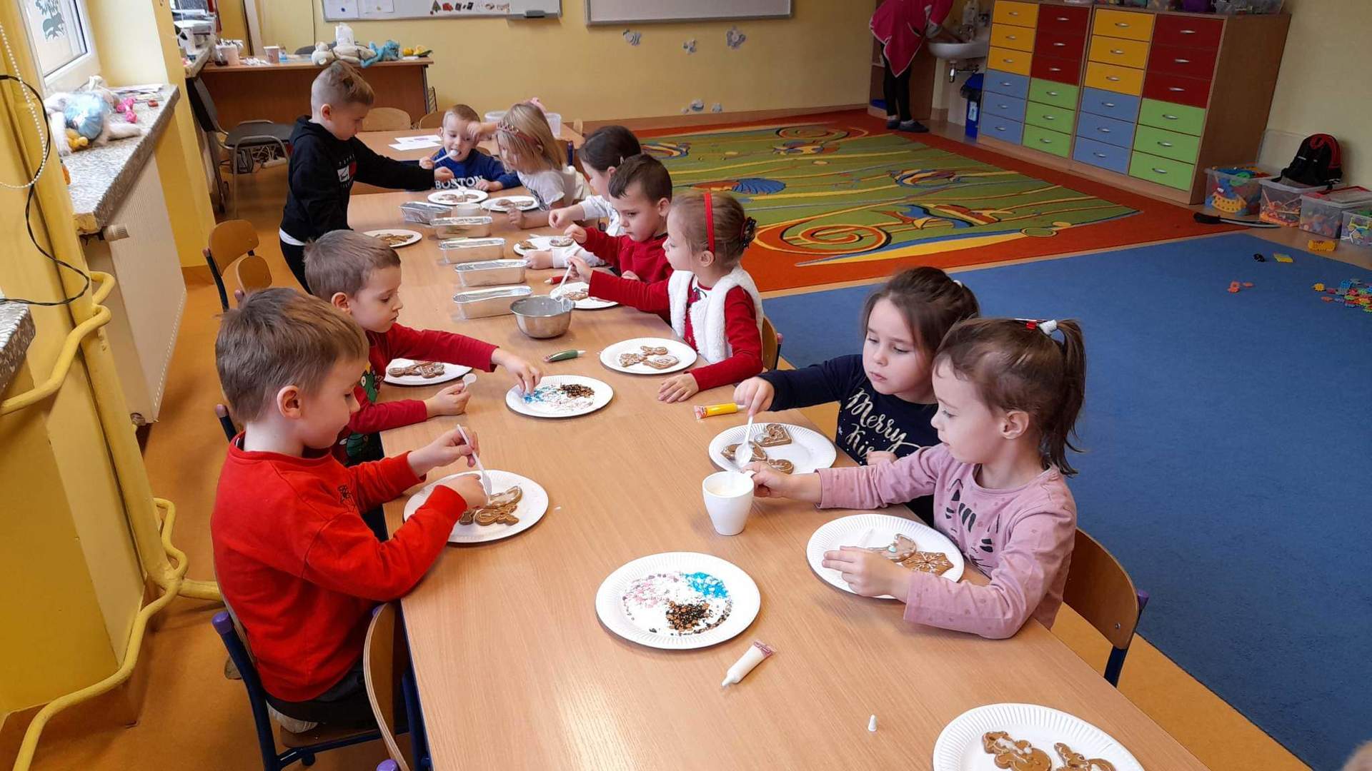 Święta Bożego Narodzenia zbliżają się wielkimi krokami. Z tej okazji dzieci ze wszystkich grup przedszkolnych ozdabiały świąteczne pierniczki. Wspólne dekorowanie świątecznych ciasteczek sprawiło dzieciom ogromną radość.