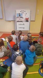 Dnia 4 stycznia 2023r. w "Tęczowych Nutkach" i "Biedronkach" został zrealizowany jeden z tematów programu "Czyste powietrze wokół nas". Przedszkolaki zapoznały się ze źródłami dymu oraz jego wpływem na zdrowie i samopoczucie. Dzieci dowiedziały się, że w Mirosławcu znajdują się czujniki, które pozwalają określić stan czystości powietrza oraz że jest możliwość zainstalowania aplikacji na telefon, która spełnia takie same zadania. Po wyczerpującym omówieniu tematu grupa wykonała pracę palstyczną pt.: "Źródła dymu".
