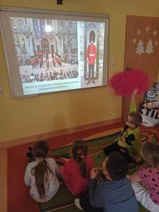 27 stycznia dzieci z grupy "Tęczowe Nutki" zrealizowały trzecie zadanie z projektu edukacyjnego "Europa i ja". Zadanie polegało na zapoznaniu dzieci z najciekawszymi miejscami w omawianym kraju. Przedszkolaki dzięki prezentacji multimedialnej dowiedziały się, że w Londynie znajduje się wiele ciekawych miejsc takich jak Big Ben, London Eye, Pałac Buckingham, Muzeum Historii Naturalnej czy Warner Bros Studio Tour. Dzieci dowiedziały się, że warto także odwiedzić brytyjskie wybrzeża a także poznały ciekawą (i zagadkową) historię budowli w Stonehenge. Przedszkolaki zgodnie przyznały, że Wielka Brytania jest niezwykle interesująca i warta odwiedzenia.