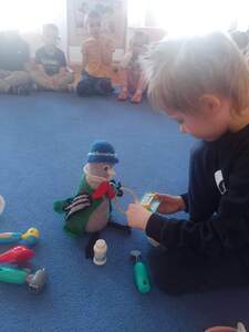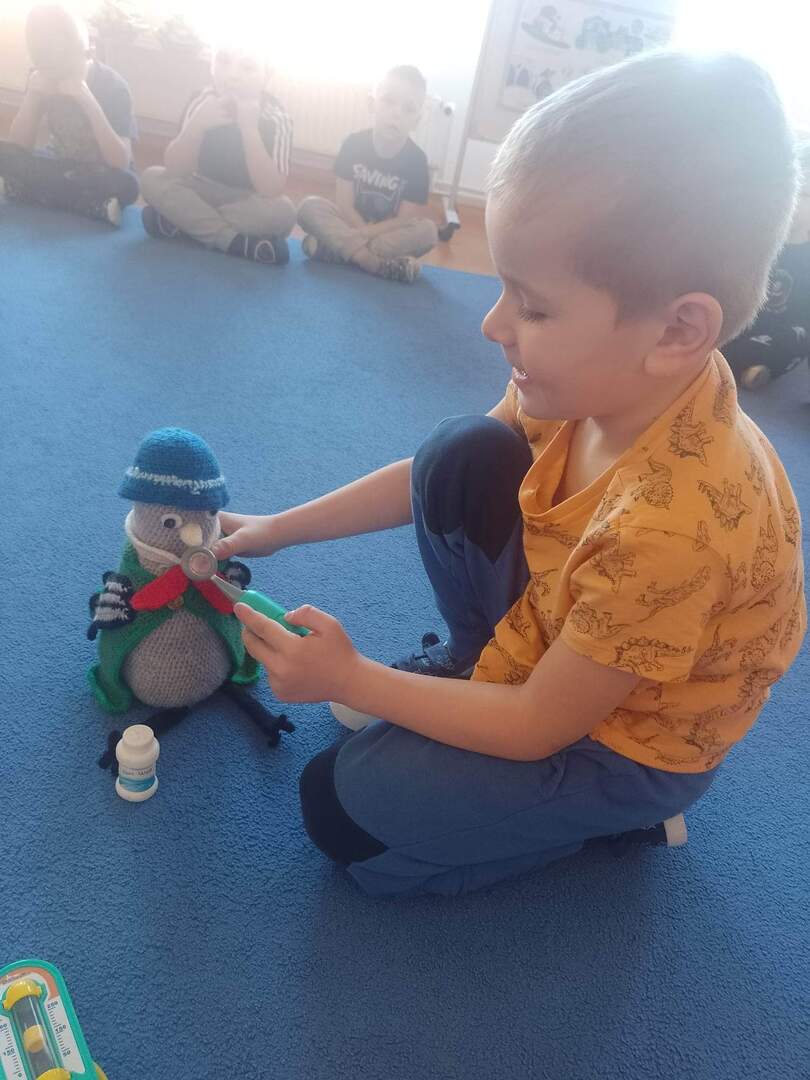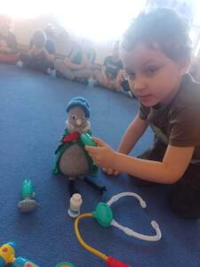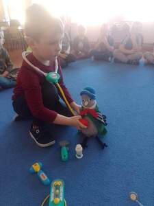 Przedszkolaki z grupy Deszczowe Kropelki w ramach projektu pt ,, Wróbelka Ekemelka poznajemy z nim przygody dzielić chcemy" zrealizowały zadanie na luty. Wysłuchały opowiadania pt,, Jak choruje Elemelek jak go leczą przyjaciele". Dowiedziały się jak dbać o swoje zdrowie, co trzeba jeść aby być zdrowym. Wykonały również kilka ćwiczeń gimnastycznych, aby poprawić swoją kondycję.