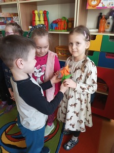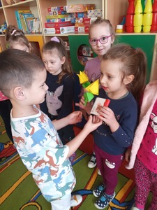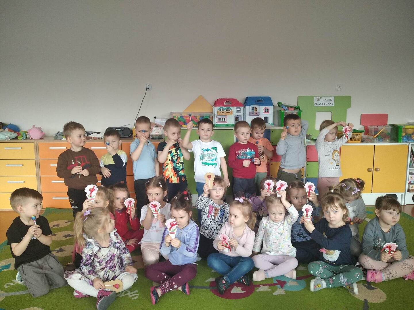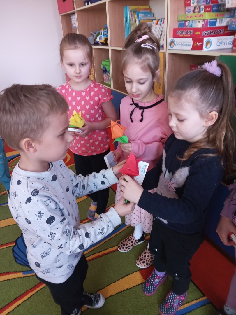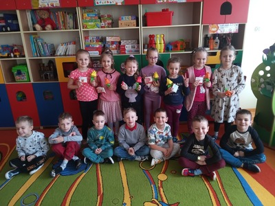 Dzień Kobiet to wyjątkowy dzień, ważny dla wszystkich kobiet, zarówno tych dużych, jak i małych. Radosna atmosfera panowała już od samego rana. W tym szczególnym dniu wszystkie kobietki te duże i te trochę większe otrzymały serdeczne życzenia i upominki. Chłopcy złożyli życzenia, tradycyjnie zaśpiewali swoim koleżankom uroczyste „100 lat”, i wręczyli  niespodzianki. Chłopcy ze szczególnym zaangażowaniem starali się, aby ten dzień uczynić wyjątkowo miłym. Jako mali dżentelmeni wyręczali dziewczynki w codziennych obowiązkach, między innymi w porządkowaniu sali po zabawie. Było można usłyszeć taneczną muzykę, w rytm której bawiły się zarówno dziewczynki jak i chłopcy. Uśmiechnięte buzie przedszkolaków, a zwłaszcza dziewczynek świadczyły o miło spędzonym czasie.