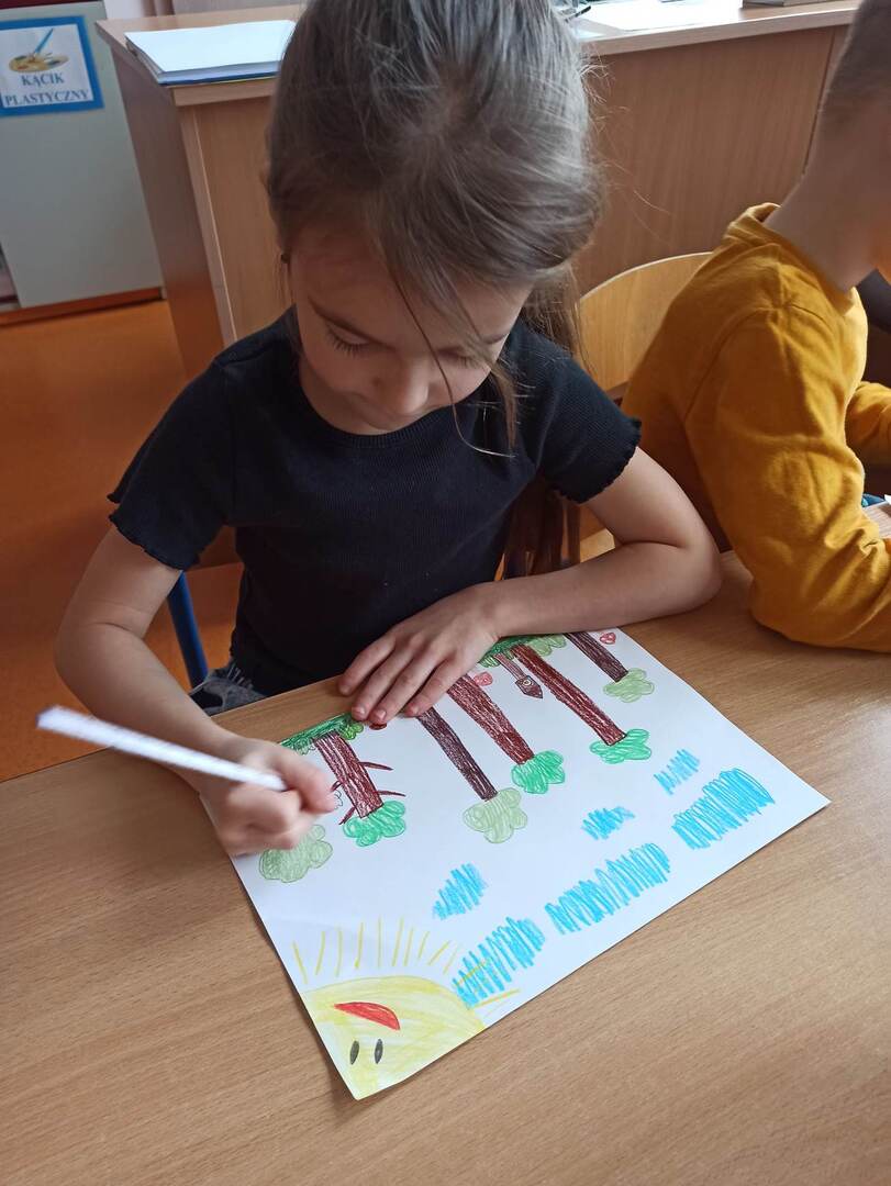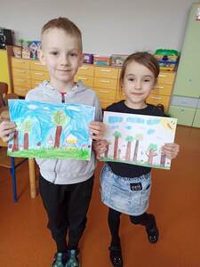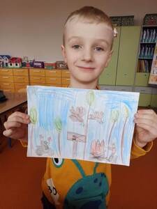Prace naszych starszaków zostały wysłane do organizatorów akcji i wejdą w skład bardzo dużej laurki, która zostanie przekazana strażnikom lasów w drniu ich święta.