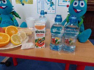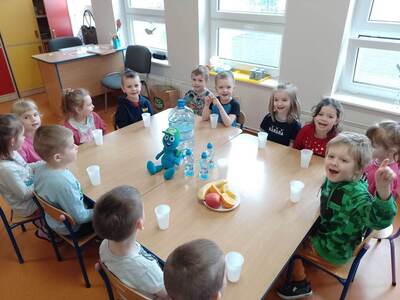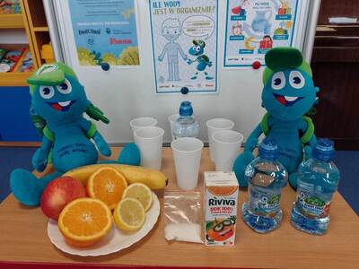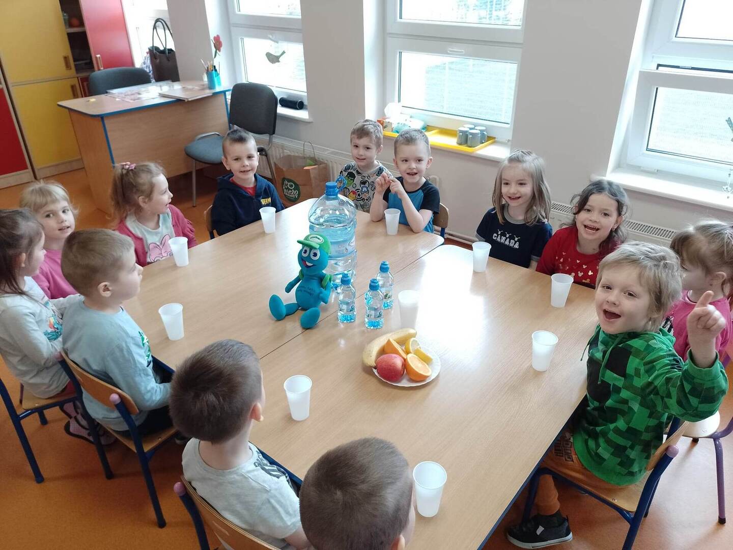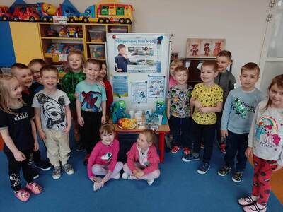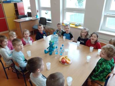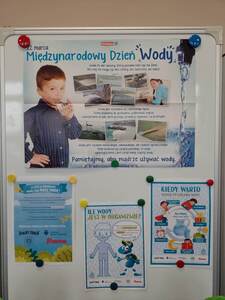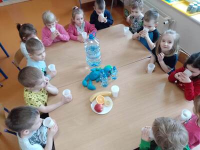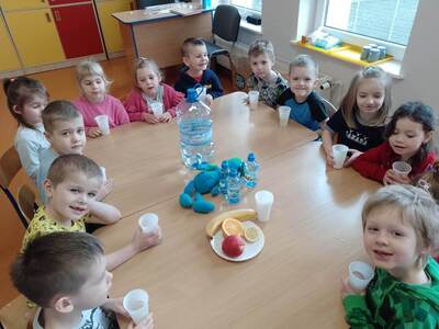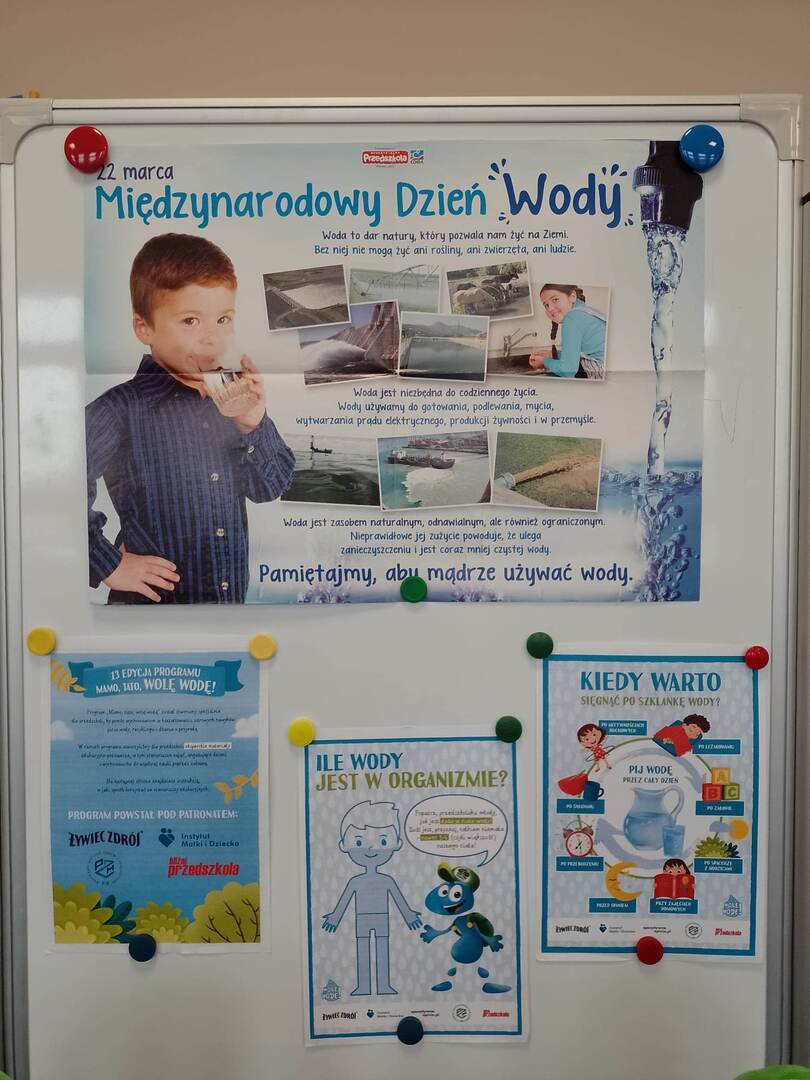 W środę 22 marca dzieci z grupy Deszczowe Kropelki obchodziły Międzynarodowy Dzień Wody. Dowiedziały się do czego potrzebna jest woda, kto jej potrzebuje i jak mądrze jej używać. Uczestniczyły również w kolejnej przygodzie z programu ,,Mamo, tato wolę wodę" pt ,, Pragnienie". Poruszone zostały zagadnienia o zdrowych nawykach żywieniowych, smaku wody, ilości cukru w słodkich napojach .Dzieci przygotowały swój napój (woda i owoce).