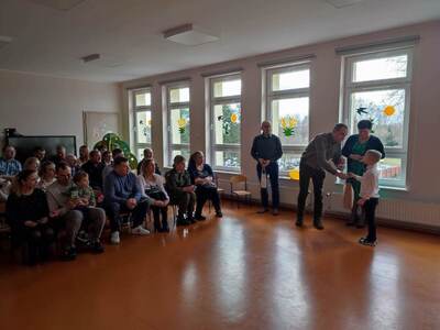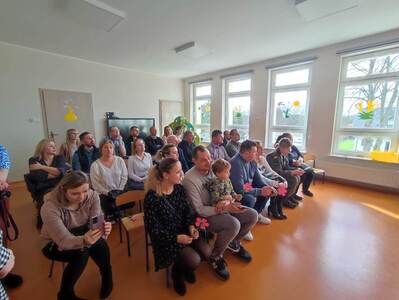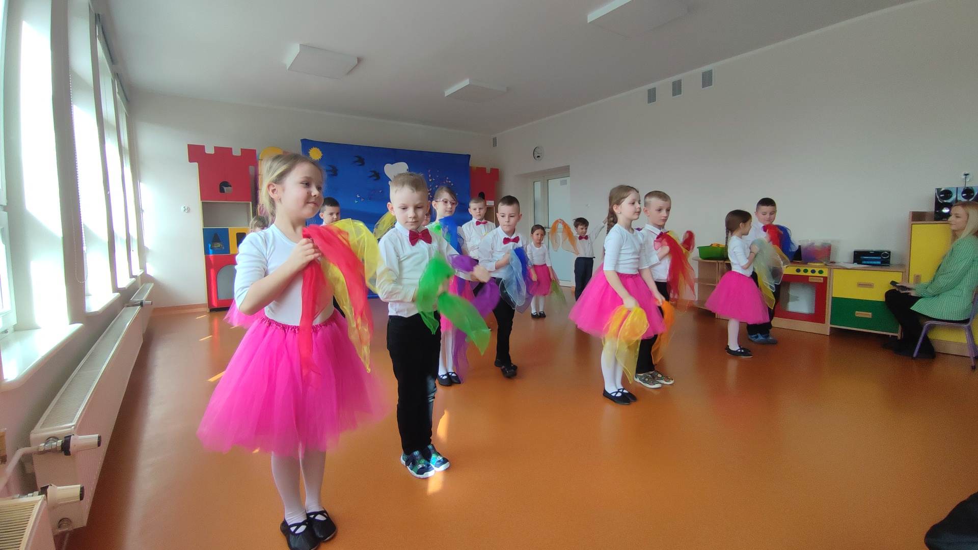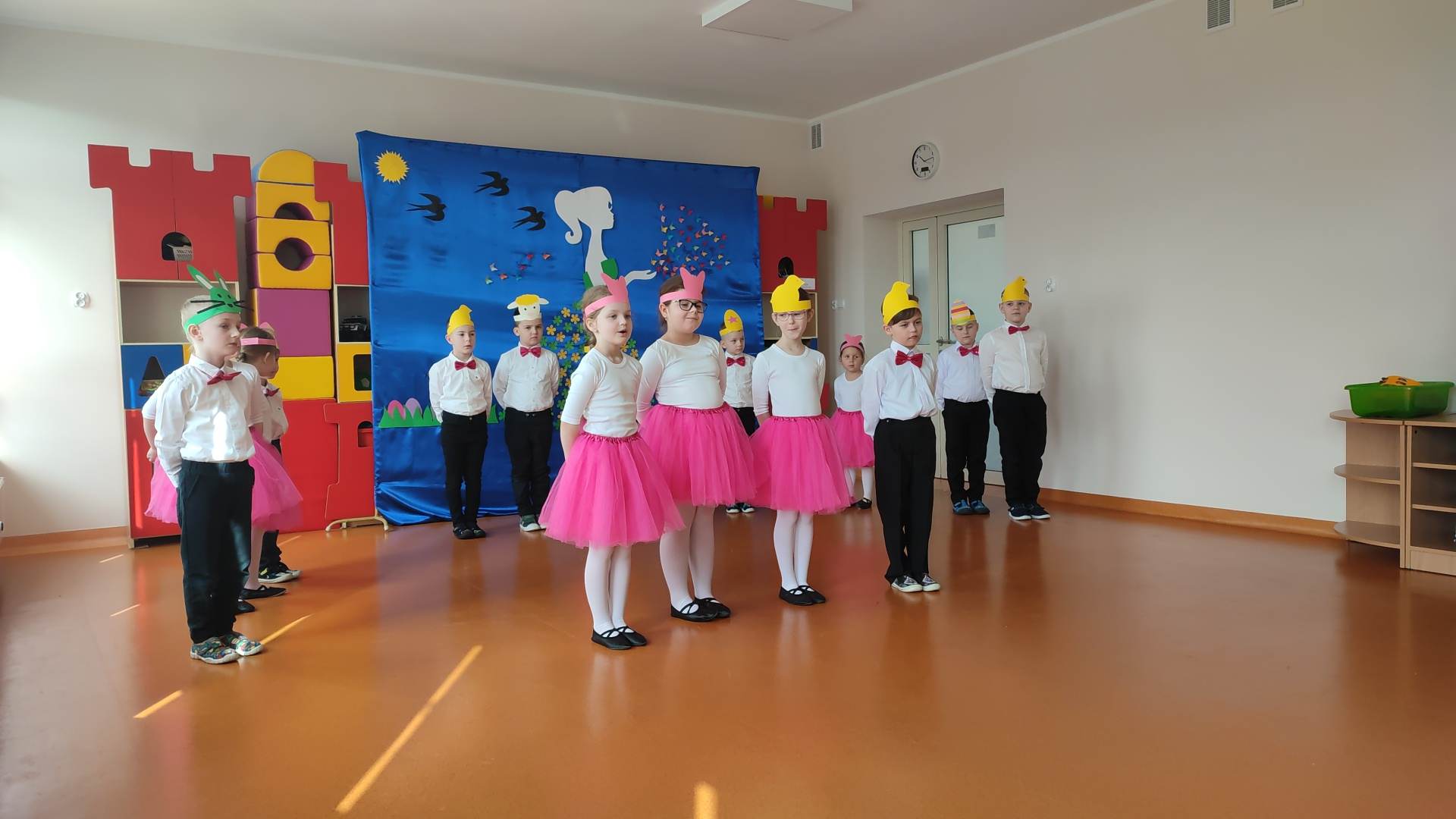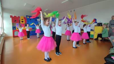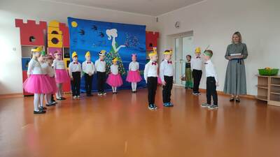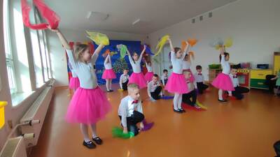 Dnia 03.04.2023r. w grupie przedszkolnej "Tęczowe Nutki" odbyły się zajęcia otwarte dla rodziców oraz osób, które przyczyniły się do remontu naszego Przedszkola "Słoneczko". Przedszkolaki przygotowały piękny występ o tematyce wiosenno - świątecznej, podczas którego tańczyły, śpiewały, recytowały i składały życzenia. Rodzice naszych dzieci mieli okazję zapoznać się ze sposobami pracy dydaktyczno - wychowawczej przedszkola oraz dowiedzieć się ile ich pociechy już potrafią.