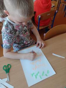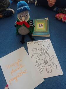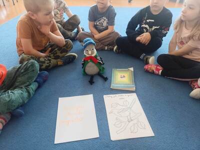 W poniedziałek, 24 kwietnia, przedszkolaki z grupy Deszczowe Kropelki zrealizowały kolejne zadanie z projektu "Wróbelka Elemelka poznajemy, z nim przygody dzielić chcemy". Dzieci wykonały księgę ptasich przysłów.