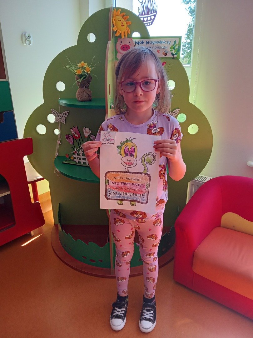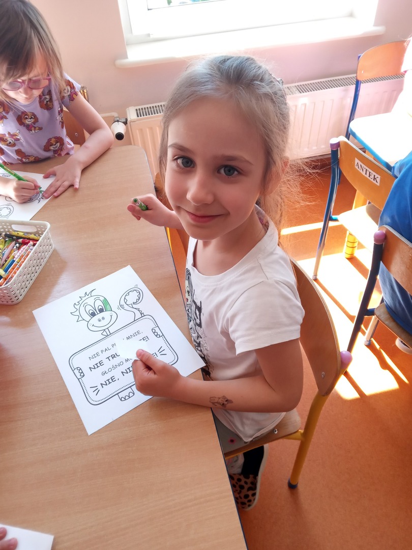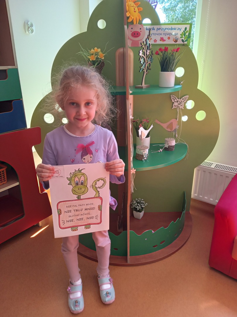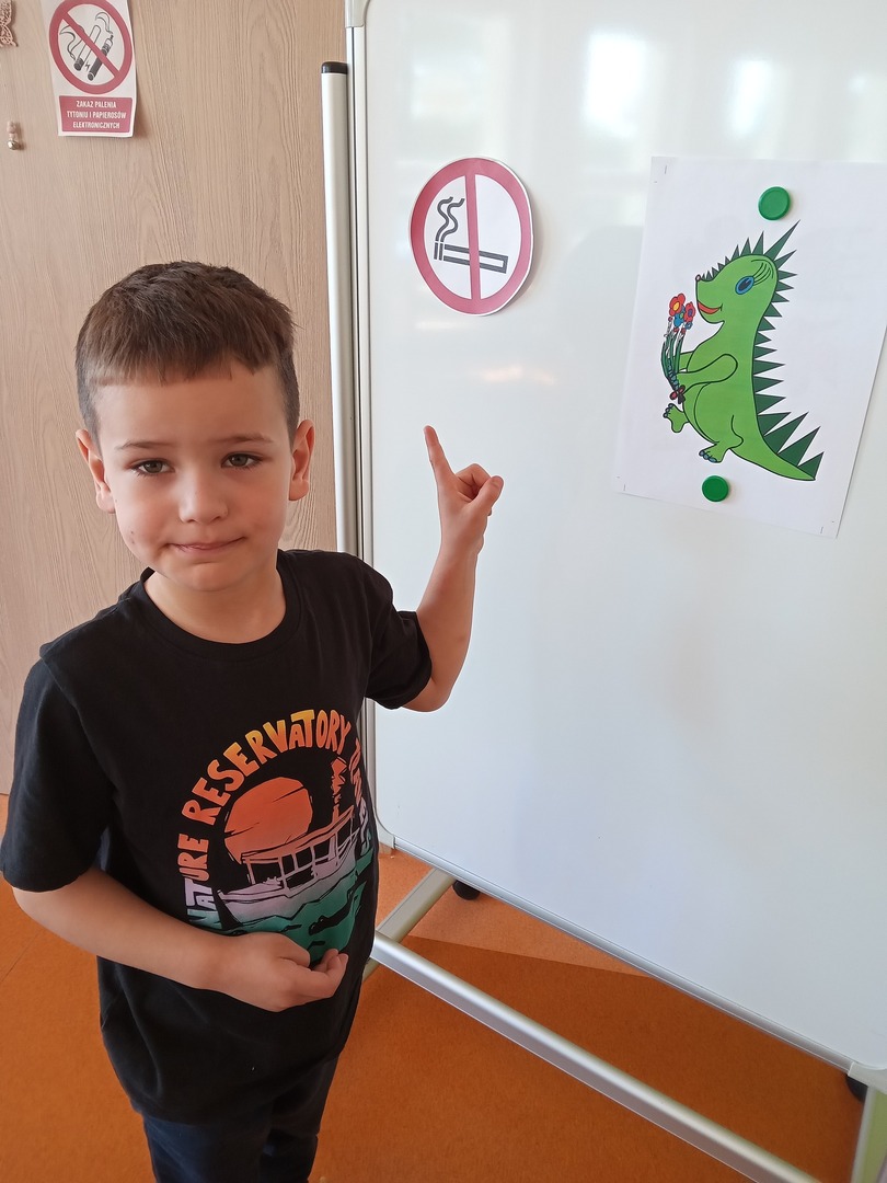 Dzieci z grupy Biedronki uczestniczyły w kolejnych, ostatnich już zajęciach z programu "Czyste powietrze wokół nas" - "Co się dzieje, gdy ludzie palą papierosy?" oraz "Jak unikać dymu papierosowego?". Przedszkolaki zwiększyły swoją wiedzę na temat skutków palenia papierosów, zachowania się, gdy znajdują się w zadymionych pomieszczeniach, a także radzenia sobie w sytuacjach, w których inni palą papierosy. Dzieci bardzo chętnie brały udział w zaproponowanych zajęciach ruchowych i tematycznych. Realizowany w przedszkolu program usystematyzował wiedzę dzieci na temat szkodliwości dymu tytoniowego.