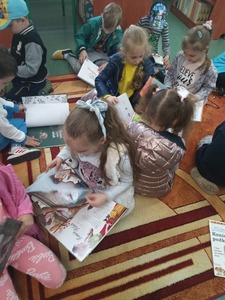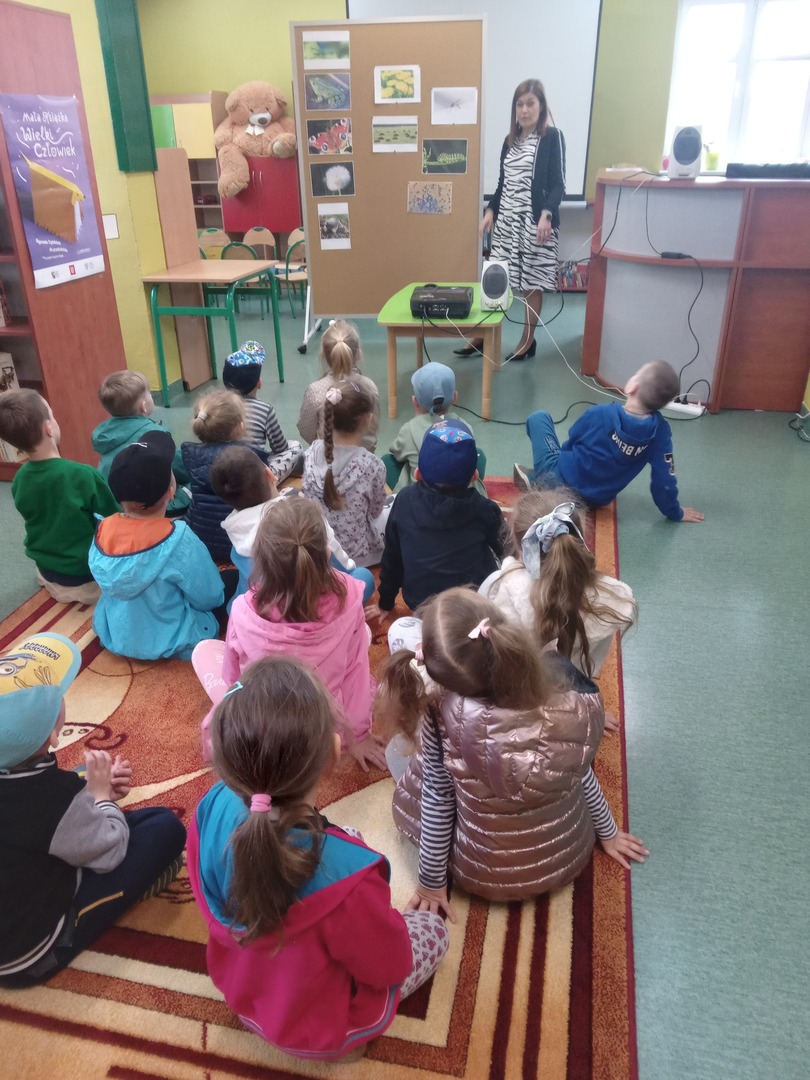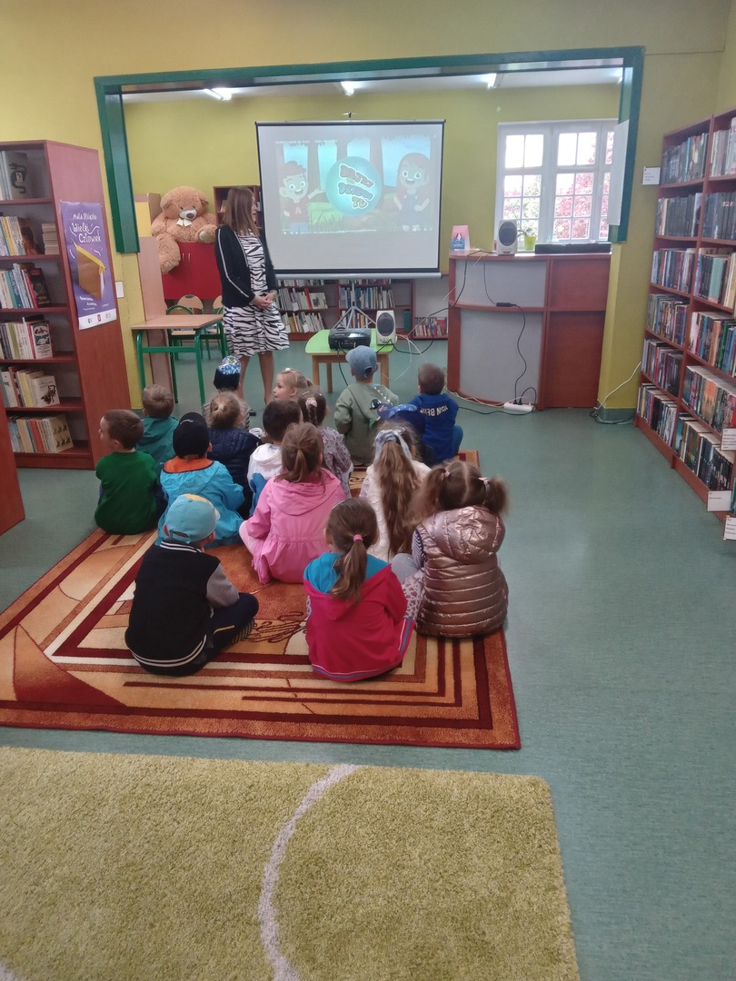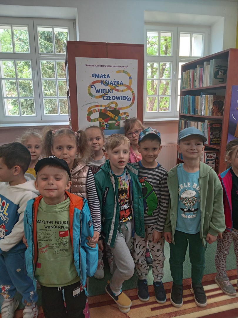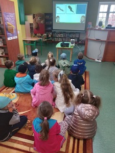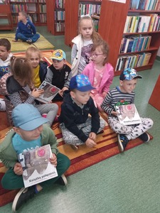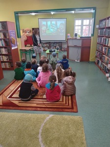 Dzieci z grupy "Biedronki"  odwiedziły Bibliotekę Publiczną w Mirosławcu. Przedszkolaki dowiedziały się, co należy zrobić, aby stać się czytelnikiem biblioteki i jak wziąć udział w projekcie "Mała książka - wielki człowiek". Zapoznały się z zasadami wypożyczania książek. W trakcie pobytu w bibliotece, dzieci rozwiązywały zagadki związane z obejrzanym wcześniej filmem przyrodniczym, z którymi znakomicie sobie poradziły. Pani bibliotekarka pokazała także dzieciom, gdzie znajduje się przeznaczony specjalnie dla nich regał z książkami. Następnie zaprezentowała i dała do obejrzenia dzieciom najmniejsze książeczki z działu dziecięcego, przypominając wcześniej jak należy dbać o książki. Przedszkolakom bardzo spodobały się kolorowe i bogato ilustrowane książeczki, które z chęcią oglądały. Spotkanie odbywało się w miłej, pełnej uśmiechów i wrażeń atmosferze. Dla wielu przedszkolaków, była to pierwsza wizyta w „domu książek”, ale na pewno nie ostatnia.