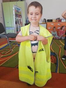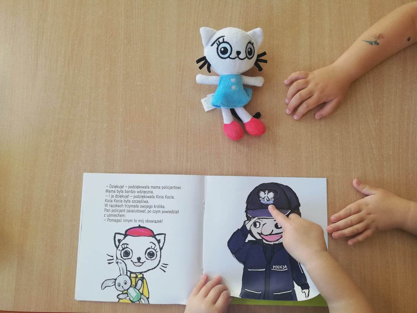 Dnia 21 i 22 września w grupie "Krasnoludki", został zrealizowany pierwszy z tematów programu edukacyjnego "Z Kicią Kocią maluchy zmieniają się w zuchy" pt. "Kicia Kocia zostaje policjantką". Na wstępie Pani wychowaczyni przeczytała dzieciom książkę , o tym jak tytułowa bohaterka poznaje zawód policjanta. Natępnie do sali przedszkolnej zawitał dzielnicowy, który opowiedział przedszkolakom o swojej pracy. Policjant pokazał także dzieciom różne rekwizyty, które maluchy miały okazję przymierzyć. W dniu natępnym krasnoludki wykonały pracę plastyczną pt. "Lizak policyjny"