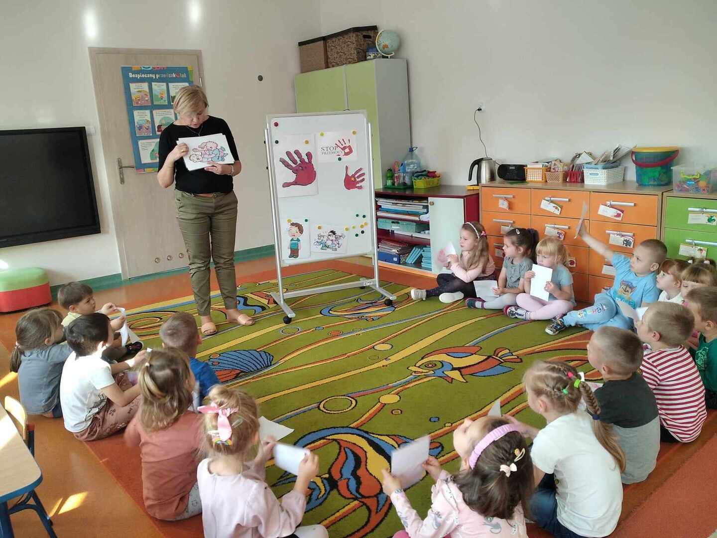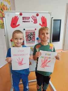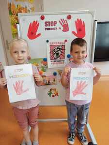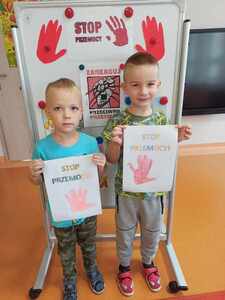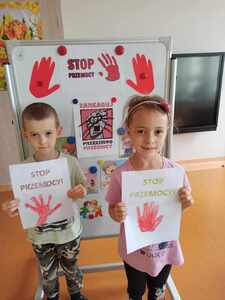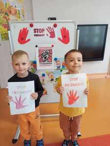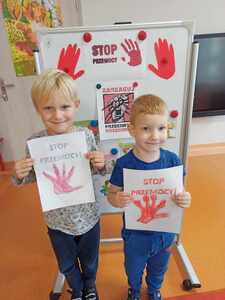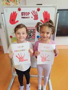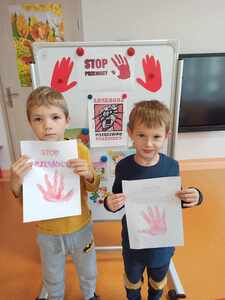 2 października obchodziliśmy w przedszkolu "Międzynarodowy Dzień Bez Przemocy". Tego dnia w każdej grupie odbyły się pogadanki z dziećmi dotyczące sposobów radzenia sobie w trudnych sytuacjach bez stosowania przemocy. Podczas wspólnych zabaw przedszkolaki uczyły się okazywania szacunku, tolerancji, rozpoznawania emocji oraz współpracy.