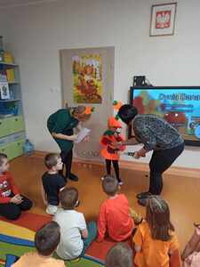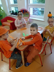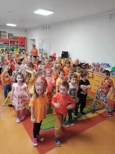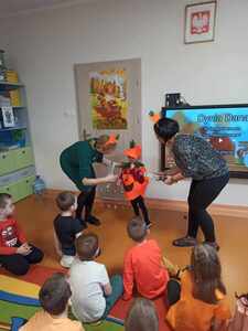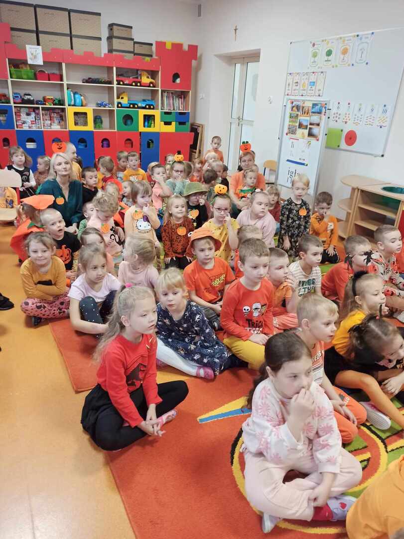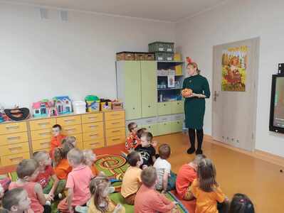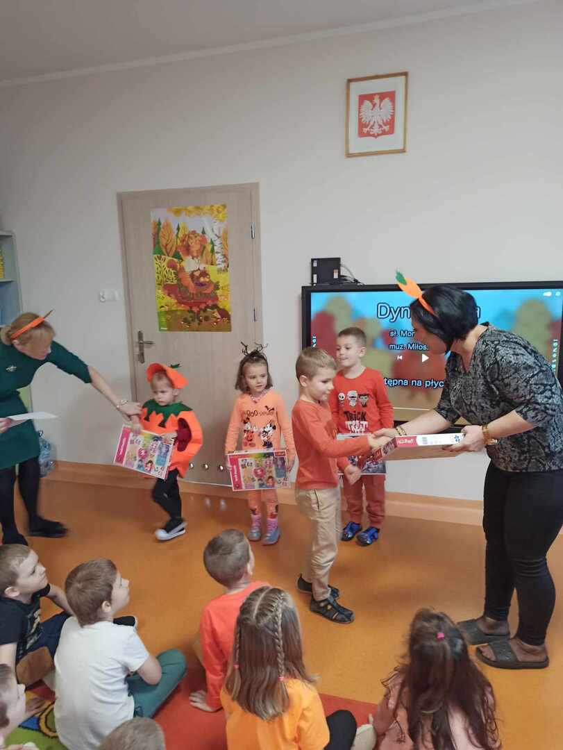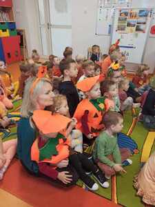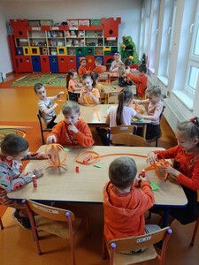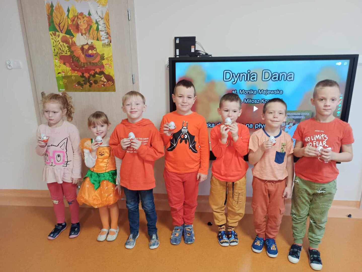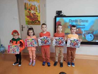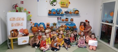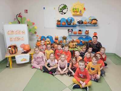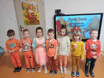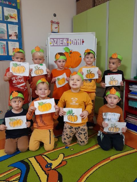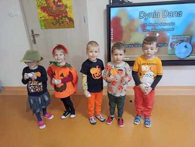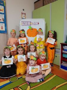 Dynia to bardzo zdrowe i urodziwe warzywo – przekonały się o tym nasze przedszkolaki, podczas obchodów ŚWIĘTA DYNI. Wśród dzieci ubranych na pomarańczowo, a nawet przebranych w dyniowe stroje, można było poczuć się jak na dyniowej grządce. Z filmu edukacyjnego przedszkolaki dowiedziały się co kryje się we wnętrzu tego warzywa, jakiego może być koloru, a także pod jaką postacią je spożywać. Dyniowe dekoracje i smakołyki pozwoliły odkryć wiele zalet tego niedocenionego warzywa, a przede wszystkim dały okazję do fantastycznej wspólnej zabawy. Dzieci przekonały się, że Dzień Dyni może być ciekawym świętem. Tego dnia został również rozstrzygnięty konkurs na "Najpiękniejszą dynię". Spośród pięknych dyniowych okazów wykonanych wspólnie przez dzieci i rodziców, wybrano pięć najładniejszych. Zwycięzcy otrzymali nagrody a pozostałe dzieci słodkie upominki. Gratulujemy.