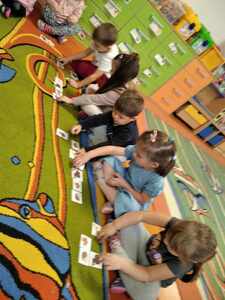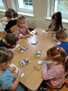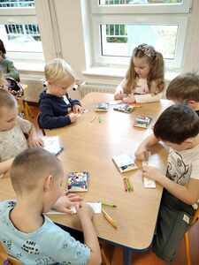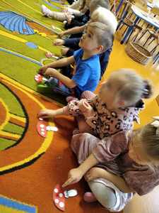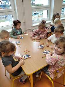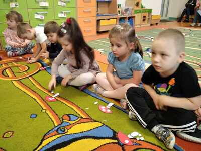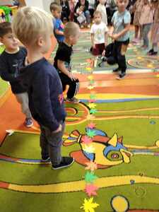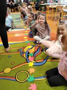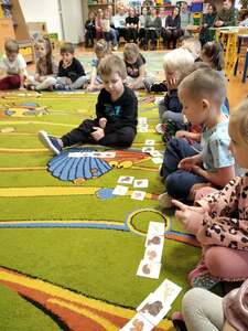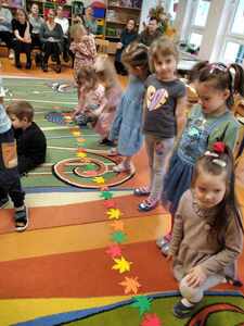 16 listopada w grupie "Muchomorków" odbyły się zajęcia otwarte dla rodziców, których tematem były "Zadania Pani Jesieni - zabwy inspirowane fragmentem wiersza E. Ostrowskiej "Bajka o jesiennym szalu". Dzieci wykonywały zadania polegające na przeliczaniu w zakresie 4, rozpoznawały i nazywały kolory, układały z liści kompozycje rytmiczne. Wykazały się wiedzą na temat zmian jesienią w świecie roślin i zwierząt.