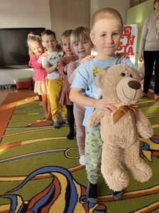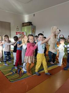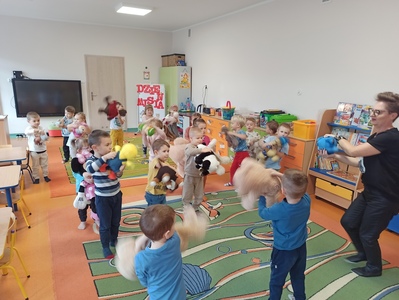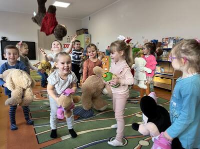 Mimo coraz nowocześniejszych i atrakcyjniejszych zabawek, moda na misie nie przemija. 24 listopada każde dziecko przyszło do przedszkola ze swoim przyjacielem- Misiem. Przybyły misie małe, duże, bardzo duże, białe, wprost bajecznie kolorowe a każdy był piękny i wyjątkowy. Uroczysty dzień rozpoczął się od wspólnej zabawy w misiowej krainie. Dzieci poznały historię Dnia Pluszowego Misia, bawiły się przy piosenkach o misiach, wykonywały prace plastyczne z misiem w roli głównej, były też ,,misiowe tańce''.Ten dzień w przedszkolu pełen był uśmiechu oraz wspólnej zabawy, jednak najwięcej radości sprawił dzieciom sam fakt zaprezentowania swojego misia kolegom i możliwość zabawy z pluszakiem. Miś jest bardzo ważny dla każdego dziecka. Można go przytulić, a nawet zwierzyć mu się z sekretów. Mamy nadzieję, że to wielkie misiowe przyjęcie zostanie we wspomnieniach dzieci na długi czas.
