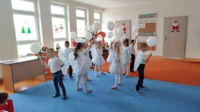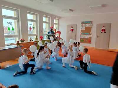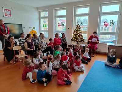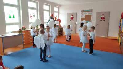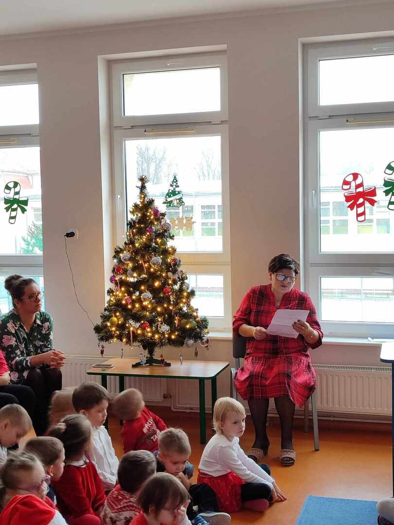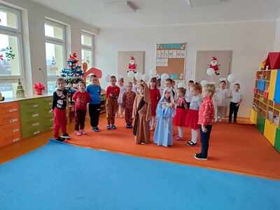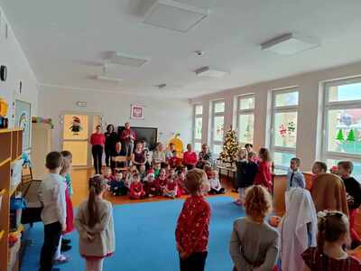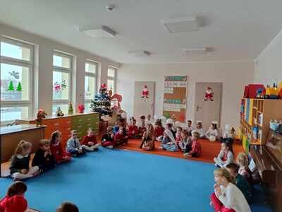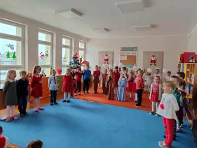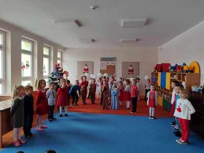 22 grudnia odbyło się w przedszkolu przedświąteczne spotkanie, podczas którego Pani Dyrektor złożyła dzieciom i pracownikom bożonarodzeniowe życzenia. Wspólne śpiewanie kolęd oraz występ starszaków wprowadziły wszystkich w ciepły, świąteczny nastrój.