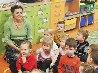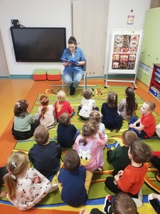 Dnia 19 grudnia grupę "Krasnoludki" i "Muchomorki" odwiedziła Pani Marta, mama Basi, która w ramach Narodowego Programu Rozwoju Cztelnictwa przeczytała naszym przedszkolakom bajkę pt. "Gwiazdko spełnij me życzenie".