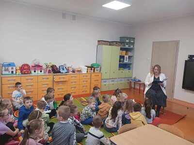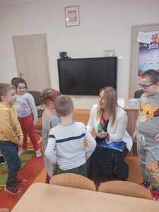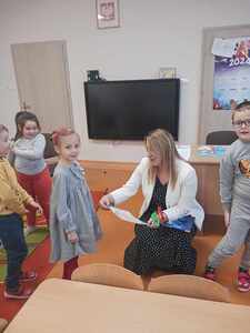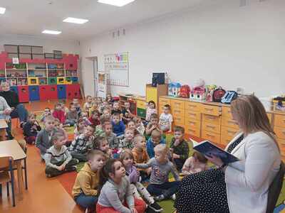 Dnia 9 lutego odwiedziła starszaki Pani Kamila, mama Ignasia z grupy Tęczowych Nutek, która w ramach realizacji Narodowego Programu Rozwoju Czytelnictwa, przeczytała dzieciom baśń H. Ch. Andersena pt.: "Dzielny ołowiany żołnierzyk". Przedszkolaki z wielkim zainteresowaniem słuchały bajki, a w podziękowaniu za miłe spotkanie wręczyły Pani Kamili drobny upominek.