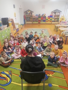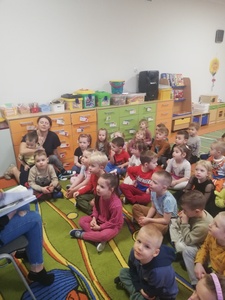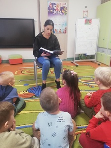 Dnia 28 lutego grupę "Krasnoludki" i "Muchomorki" odwiedziła Pani Marta, mama Filipa, która przeczytała dzieciom książkę pt. "Reksio - wielka księga przygód" w ramach Narodowego Programu Rozwoju Czytelnictwa. Przedszkolaki z zainteresowaniem słuchały opowiadania. Seredecznie dziękujemy Pani Marcie.