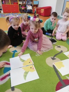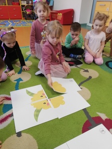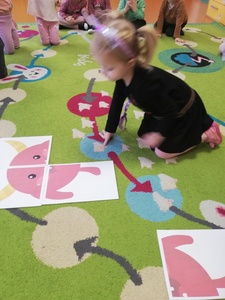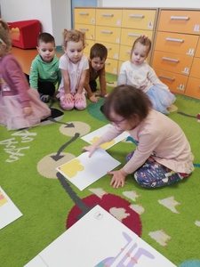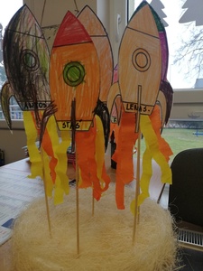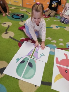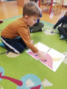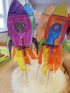 W miesiącu lutym grupa "Krasnoludki" zrealizowała kolejny temat z projektu edukacyjnego Z Kicią Kocią maluchy zmieniają się w zuchy pt. "Kicia Kocia w kosmosie".W pierwszej kolejności dzieci wysłuchały  opowiadania i odpowiedziały na pytania które zadała wychowawczyni. Podczas zabaw dywanowych przedszkolaki układały puzle, przeliczały ilość ufoludków oraz opisywały ich wygląd. Natępnie dzieci obejrzały bajkę edukacyjną o kosmosie i wykonały pracę plastyczną.