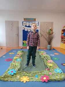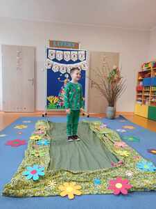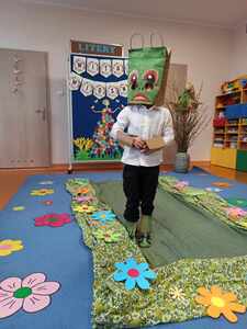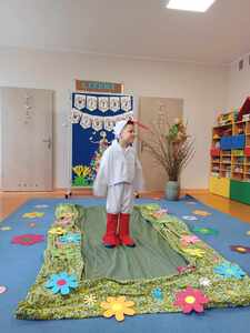 "Powitanie wiosny" zakończyło się POKAZEM MODY WIOSENNEJ, podczas którego przedszkolaki prezentowały na wybiegu swoje przebrania. Było kolorowo, zabawnie i wiosennie.