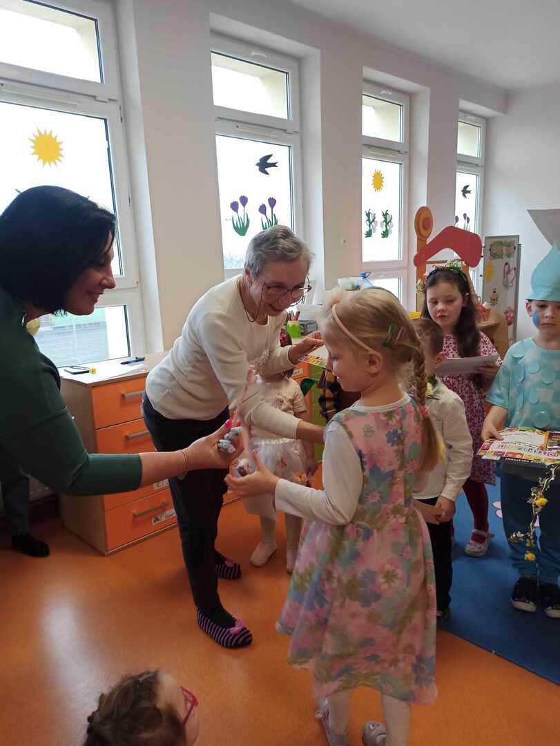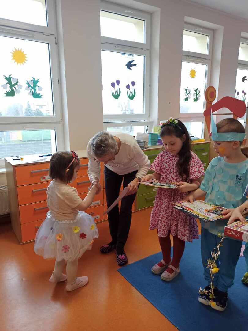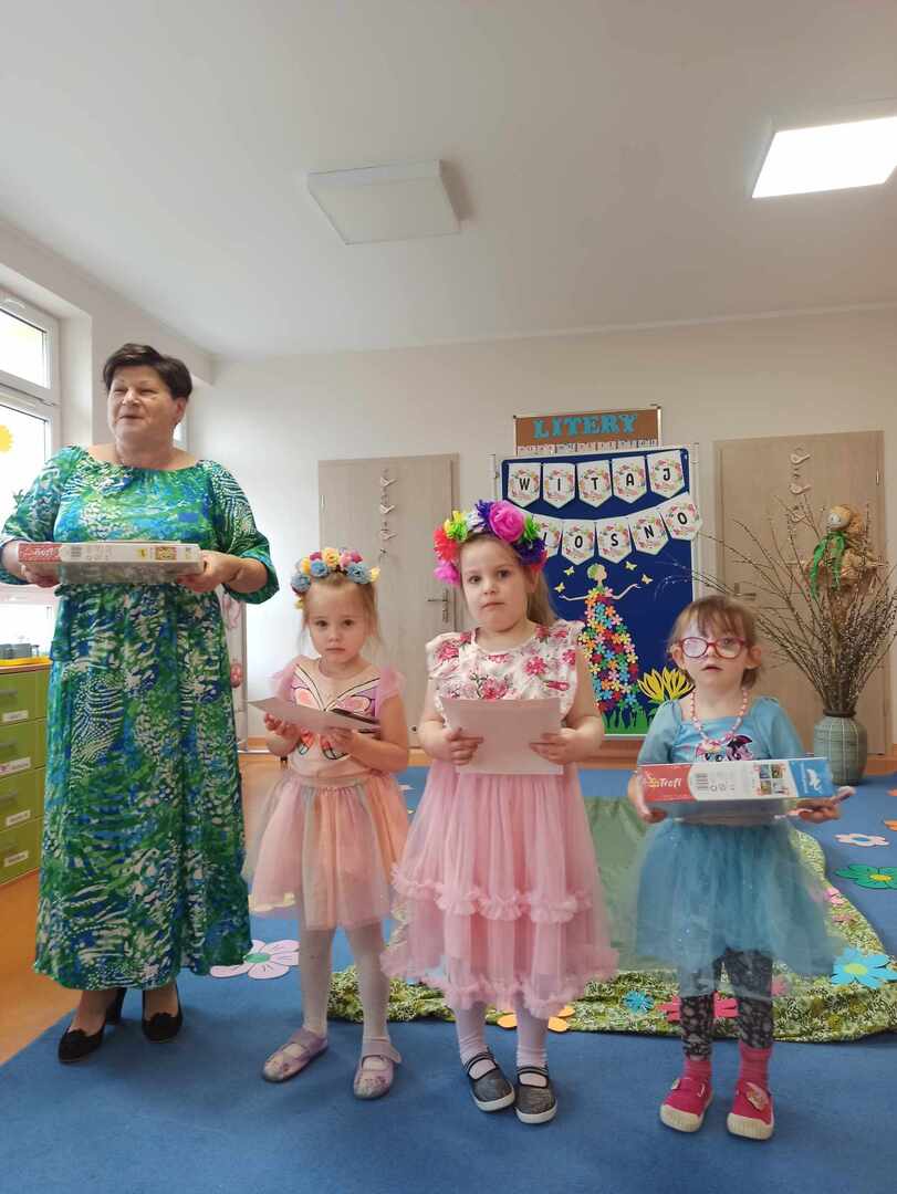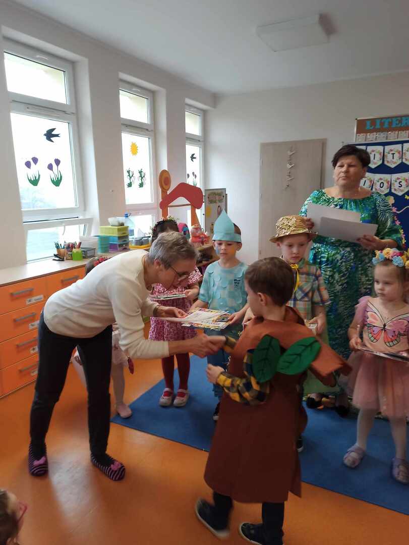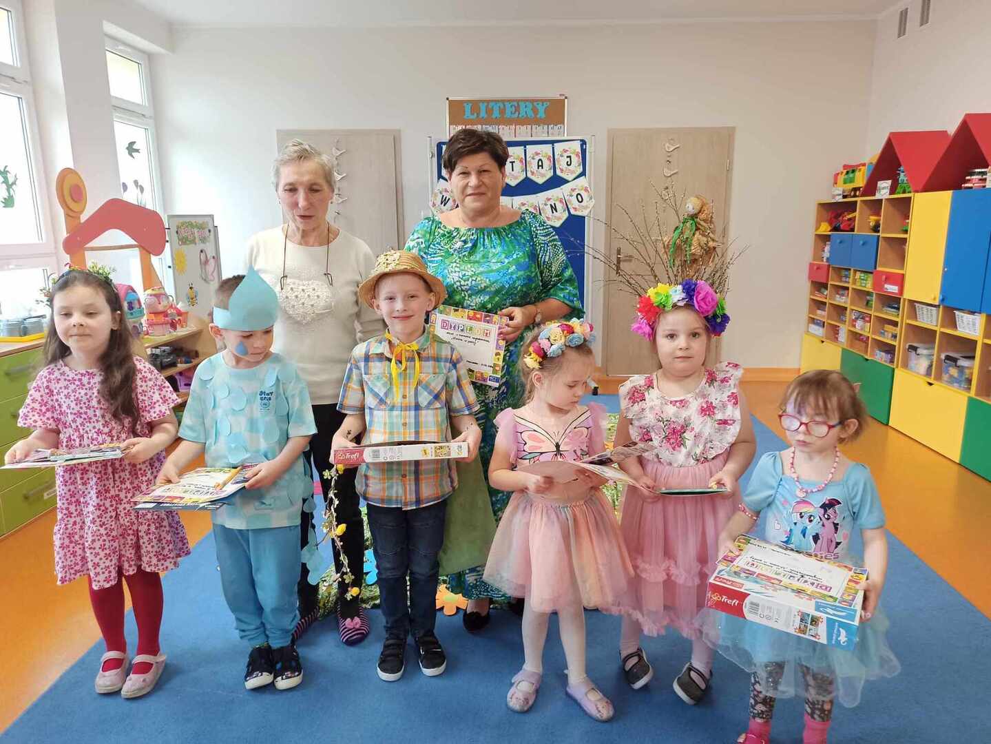 Dnia 21.03.2024r. obchodziliśmy w przedszkolu uroczystość "Powitania Wiosny". Z tej okazji odbył się konkurs recytatorski "Wiosna w poezji", w którym wzięły udział chętne dzieci z całego przedszkola. Celem konkursu było rozwijanie zdolności recytatorskich przedszkolaków, zachęcanie dzieci do występów z udziałem publiczności oraz prezentacja umiejętności recytatorskich dzieci. Przedszkolaki dzielnie pokonały tremę i pięknie recytowały wiersze. Dzieci wraz z rodzicami przygotowały też bardzo pomysłowe i zabawne stroje nawiązujące do tematyki recytowanych wierszy. Jury w składzie: Pani Dyrektor Halina Rogowska i Pani Małgorzata Borowicz, oceniało występy dzieci w dwóch kategoriach wiekowych: 3-4 latki i 5-6 latki.