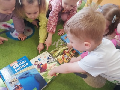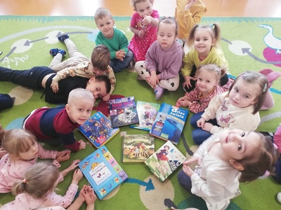 Dnia 23 kwietnia grupa Krasnoludki obchodziła Światowy Dzień Książki. Celem przeprowadzenia zajęć było rozbudowanie zainteresowań czytelniczych dzieci, poznanie zasad korzystania z książek oraz zaprezentowanie znajomości literatury przez przedszkolaki.