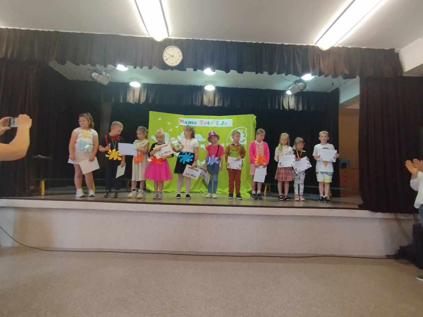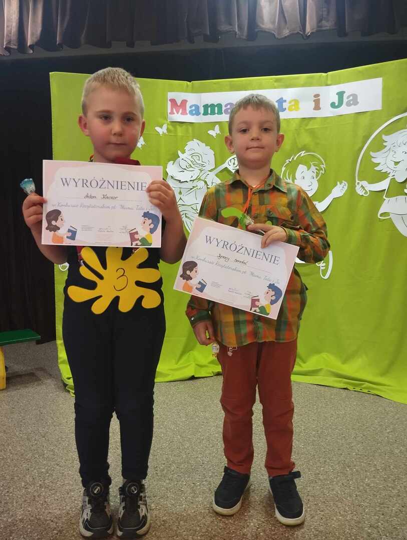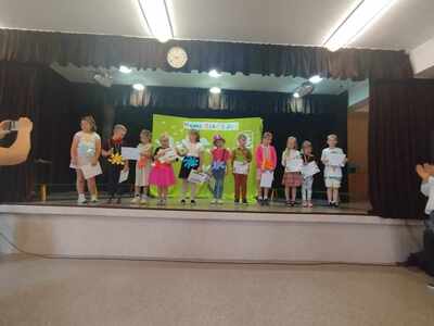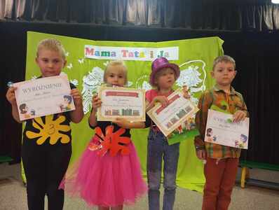 3 czerwca 2024r. dzieci 6-letnie z naszego przedszkola wzięły udział w Szkolnym Konkursie Recytatorskim pt.:"Mama, tata i ja", którego celem było propagowanie poezji dziecięcej, wzbudzanie uczuć estetycznych w kontakcie z utworami poetyckimi oraz ukazanie cech poprawnej dekalmacji.