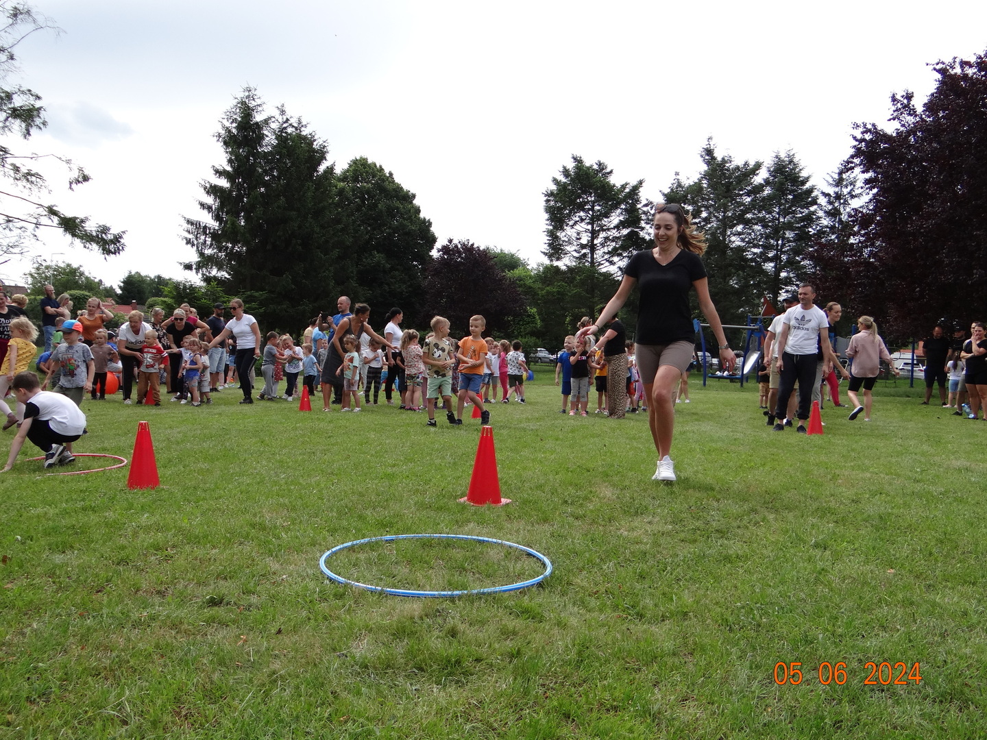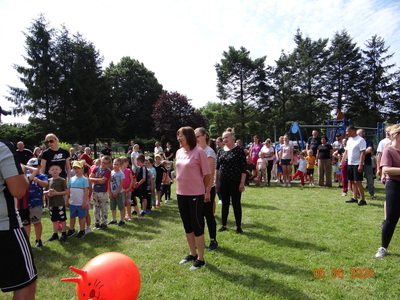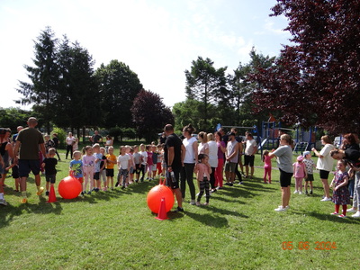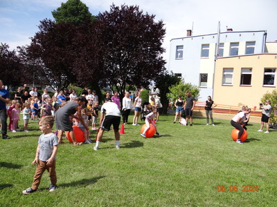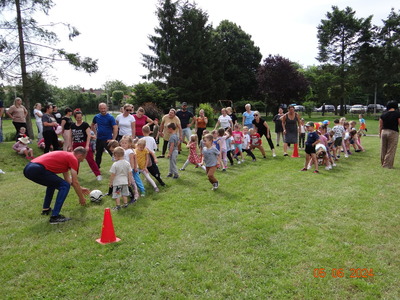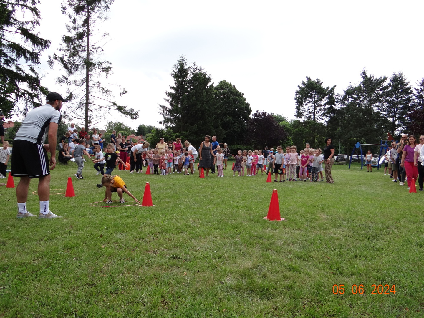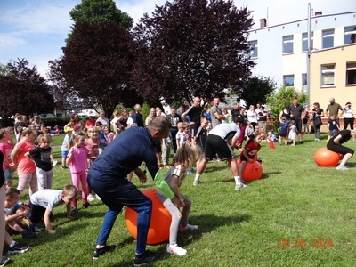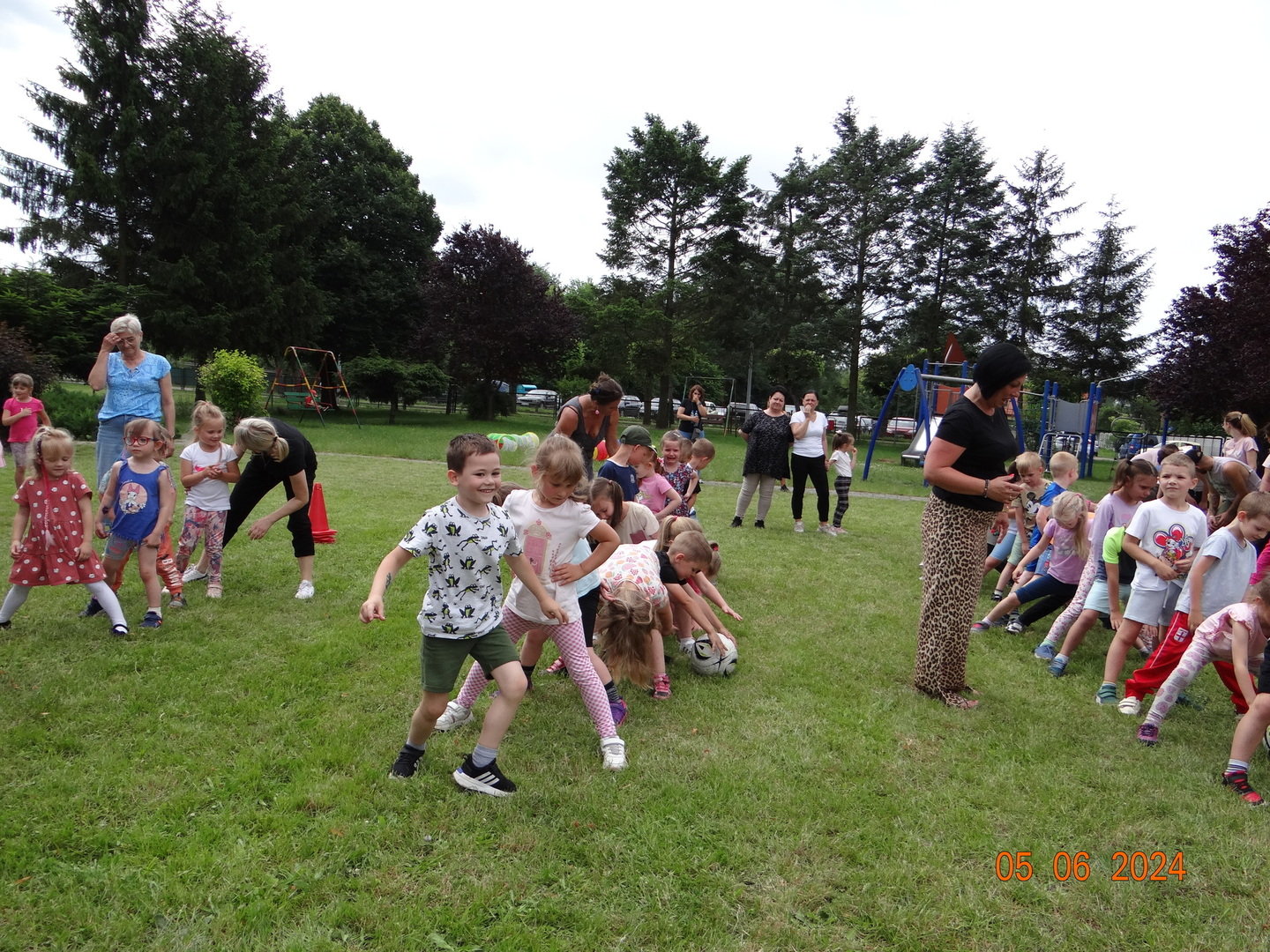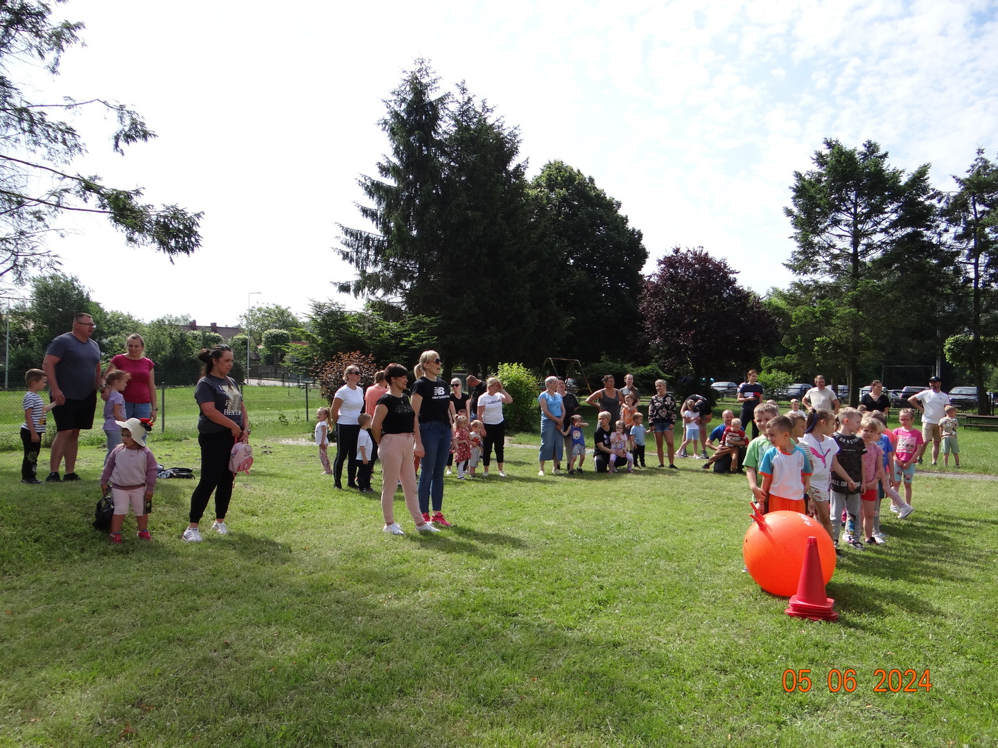5 czerwca 2024r. odbyła się w przedszkolu RODZINNA SPARTAKIADA, którą prowadzili Panowie Wojciech Chromiński i Sebastian Wesołowski. Dzieci wraz z rodzicami brali udział w różnych konkurencjach sportowych, podczas których przede wszystkim liczyła się wspaniała zabawa i  wspólne spędzenie czasu ze swoimi dziećmi. Spotkanie zakończono rozgrywką meczu w piłkę nożną rodzice kontra dzieci, którego wygrana oczywiście była po stronie dzieci. Serdecznie dziękujemy rodzicom za obecność tego dnia a Panom Wojtkowi i Sebastianowi za pomoc i profesjonalne przeprowadzenie rodzinnej spartakiady.😄