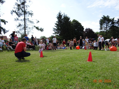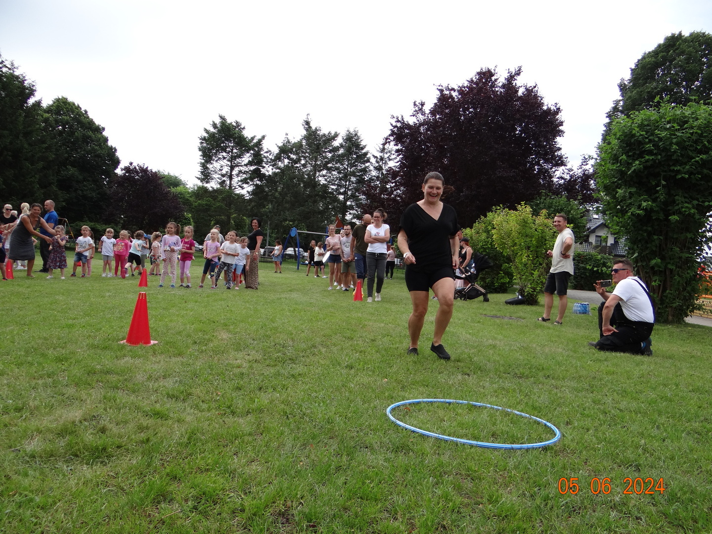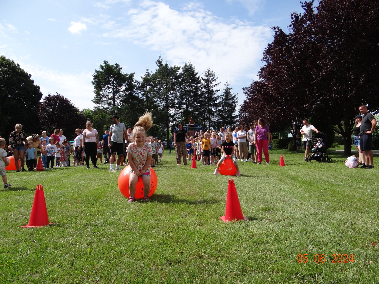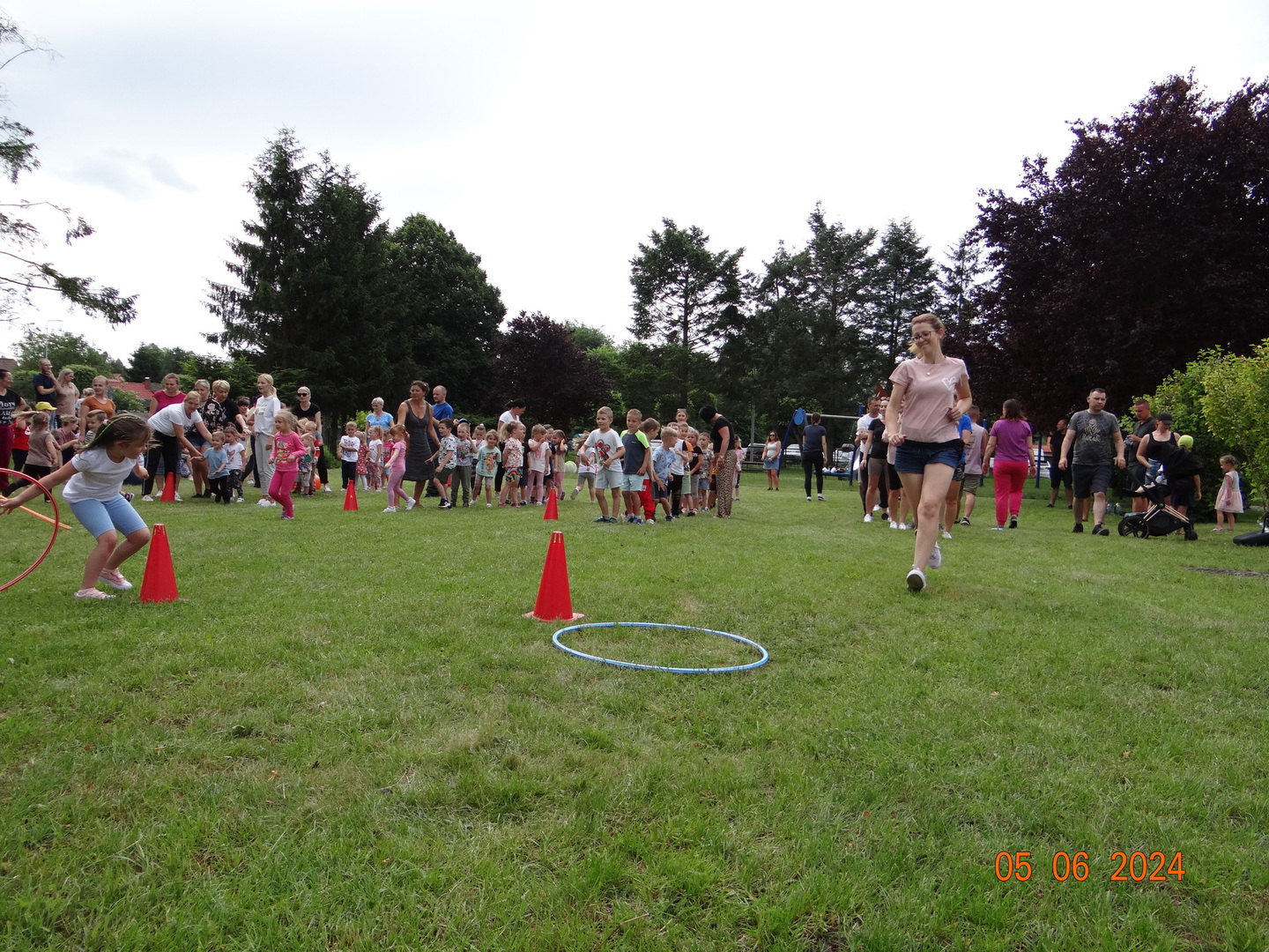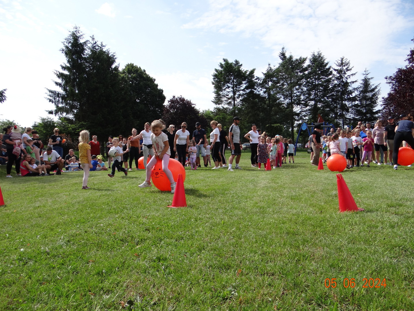 5 czerwca 2024r. odbyła się w przedszkolu RODZINNA SPARTAKIADA, którą prowadzili Panowie Wojciech Chromiński i Sebastian Wesołowski. Dzieci wraz z rodzicami brali udział w różnych konkurencjach sportowych, podczas których przede wszystkim liczyła się wspaniała zabawa i  wspólne spędzenie czasu ze swoimi dziećmi. Spotkanie zakończono rozgrywką meczu w piłkę nożną rodzice kontra dzieci, którego wygrana oczywiście była po stronie dzieci. Serdecznie dziękujemy rodzicom za obecność tego dnia a Panom Wojtkowi i Sebastianowi za pomoc i profesjonalne przeprowadzenie rodzinnej spartakiady.😄