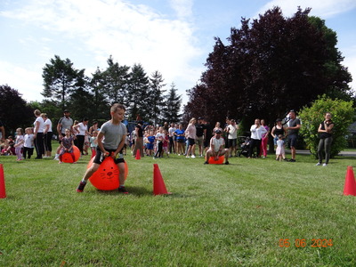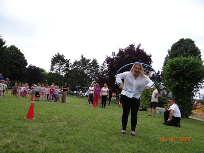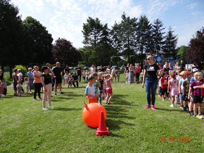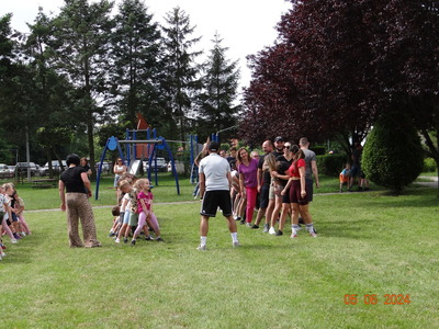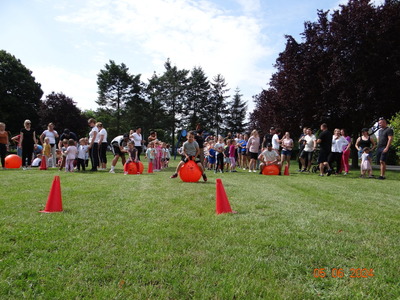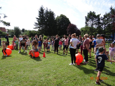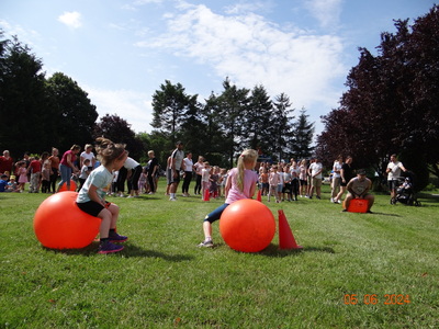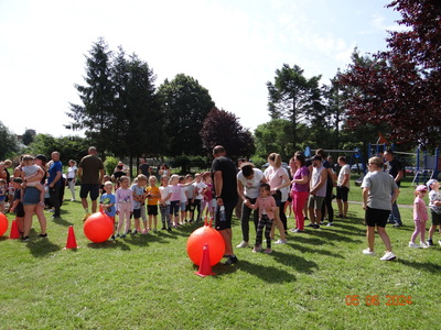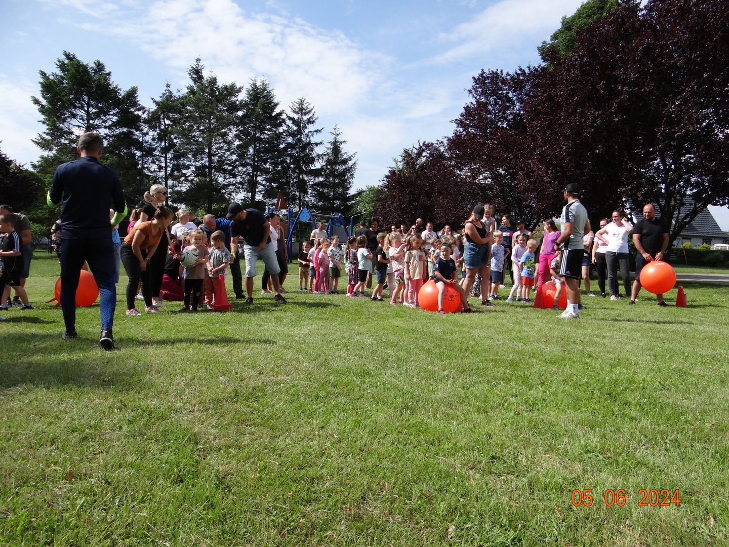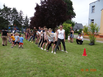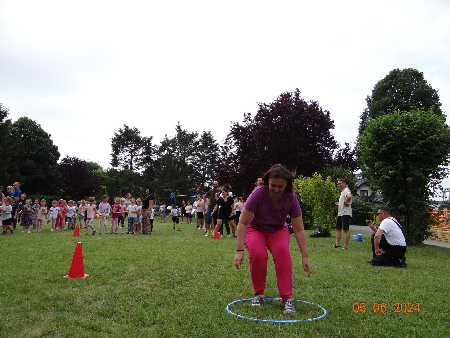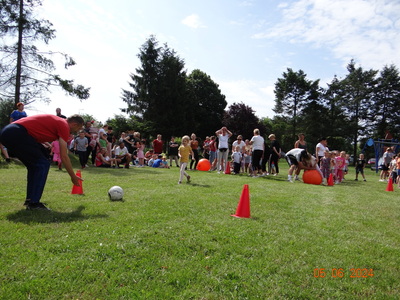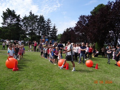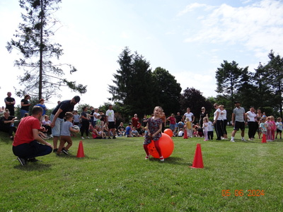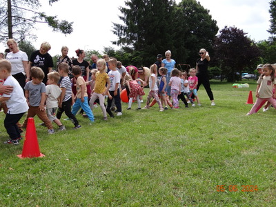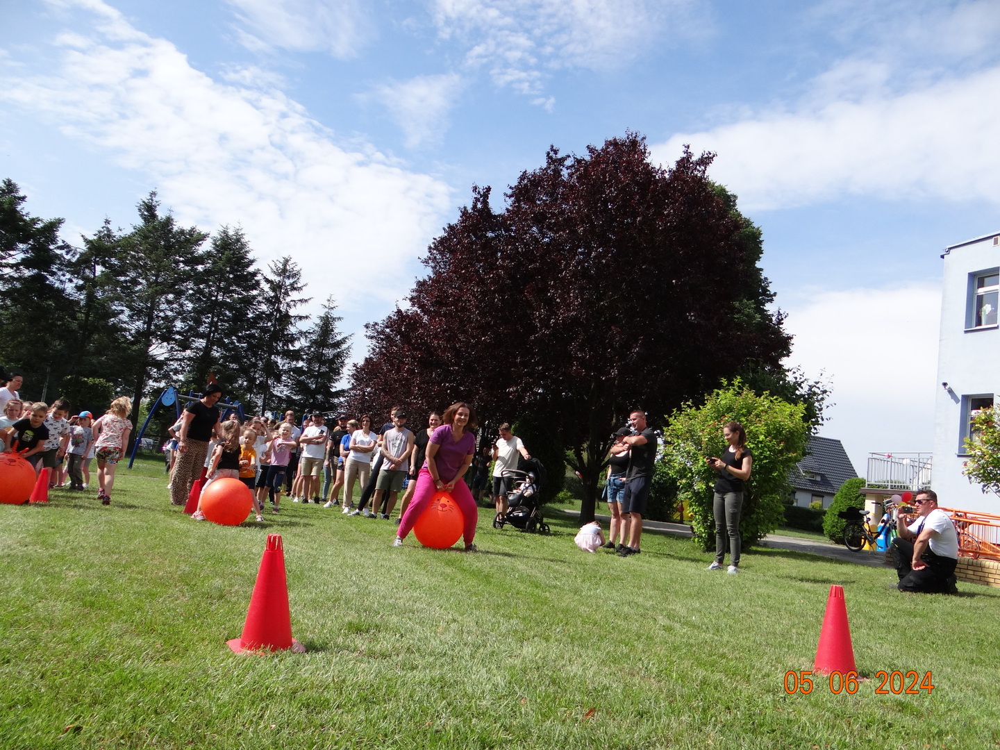 5 czerwca 2024r. odbyła się w przedszkolu RODZINNA SPARTAKIADA, którą prowadzili Panowie Wojciech Chromiński i Sebastian Wesołowski. Dzieci wraz z rodzicami brali udział w różnych konkurencjach sportowych, podczas których przede wszystkim liczyła się wspaniała zabawa i  wspólne spędzenie czasu ze swoimi dziećmi. Spotkanie zakończono rozgrywką meczu w piłkę nożną rodzice kontra dzieci, którego wygrana oczywiście była po stronie dzieci. Serdecznie dziękujemy rodzicom za obecność tego dnia a Panom Wojtkowi i Sebastianowi za pomoc i profesjonalne przeprowadzenie rodzinnej spartakiady.😄