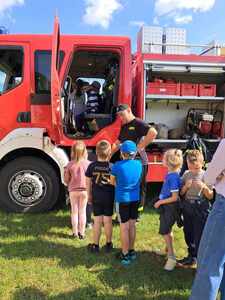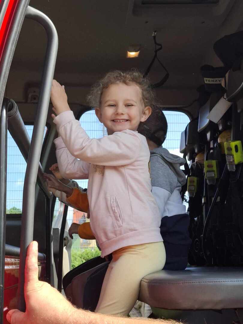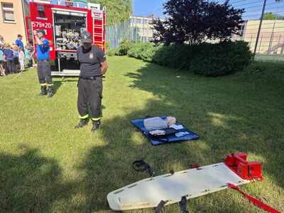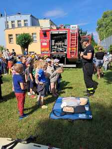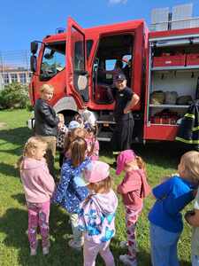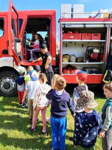 Największą atrakcją dla dzieci był pokaz sprzętu i wyposażenia specjalistycznego wozu. Przedszkolaki mogły wejść do wozu i przez chwilę poczuć się jak strażacy podczas akcji przeciwpożarowej, mogły również przymierzyć specjalistyczny i jakże ciężki strój, w którym strażacy gaszą pożary.