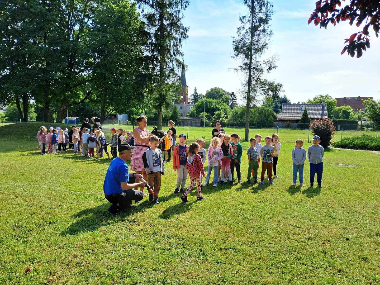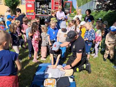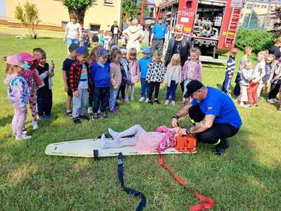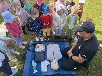 10 czerwca 2024r. nasze przedszkole odwiedzili strażacy OSP w Mirosławcu. Panowie w trakcie spotkania przybliżyli dzieciom, na czym polega ich praca oraz jakim sprzętem ratowniczym się posługują. Dzieci dowiedziały się, że ich działania nie polegają tylko na gaszeniu pożarów, ale również na udzielaniu pomocy ludziom podczas powodzi, burz i wypadków samochodowych. Prowadzą również wiele innych działań, które służą ludziom i ich bezpieczeństwu. Interwencje te są bardzo niebezpieczne i wymagają niecodziennej odwagi.
