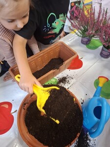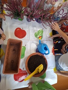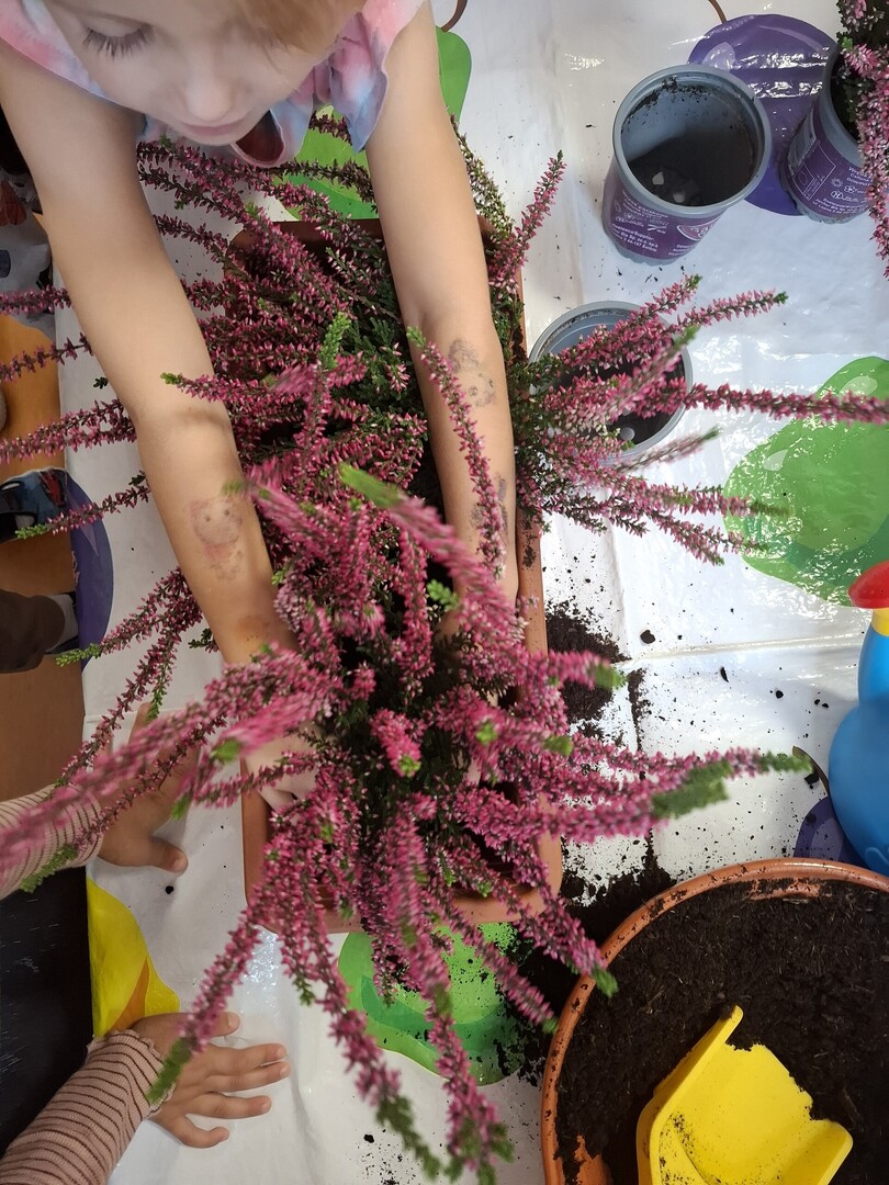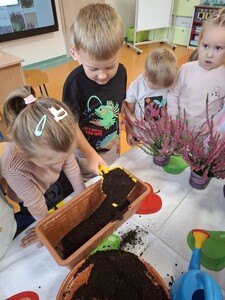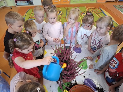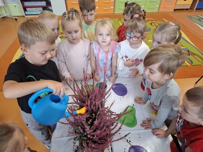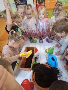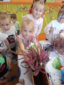 Dnia 16 września dzieci z grupy "Muchomorki" zrobiły pierwszy krok do zimy. Przedszkolaki wraz z wychowawczynią zasadziły wrzosy oraz dowiedziały się jak takie roślinki należy pielęgnować i czego potrzebują do życia.