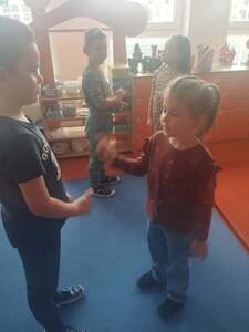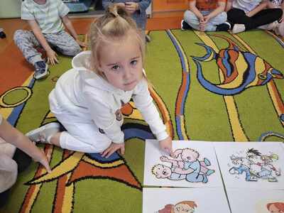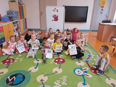 2 października obchodziliśmy w przedszkolu "Międzynarodowy Dzień Bez Przemocy". Tego dnia w każdej grupie odbyły się pogadanki z dziećmi dotyczące sposobów radzenia sobie w trudnych sytuacjach bez stosowania przemocy na podstawie wysłuchanych wcześniej opowiadań. Podczas wspólnych zabaw przedszkolaki uczyły się okazywania szacunku, rozpoznawania emocji oraz współpracy.