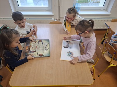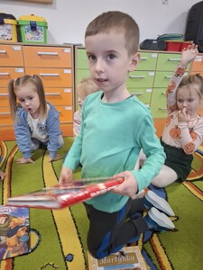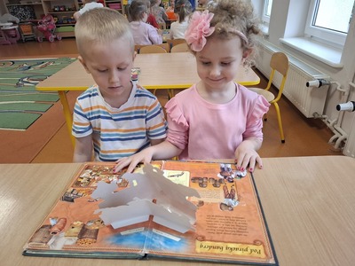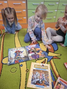 W tym tygodniu grupa Muchomorków zrealizowała cykl zajęć pt. " Tydzień z bajką". Głównym celem było zainteresowanie dzieci bajkami oraz rozwój czytelnictwa. Przez okres jednego tygodnia przedszkolaki poznawały przygody bohaterów podczas czytania książek, oglądania filmów oraz róznorodnych zabaw.