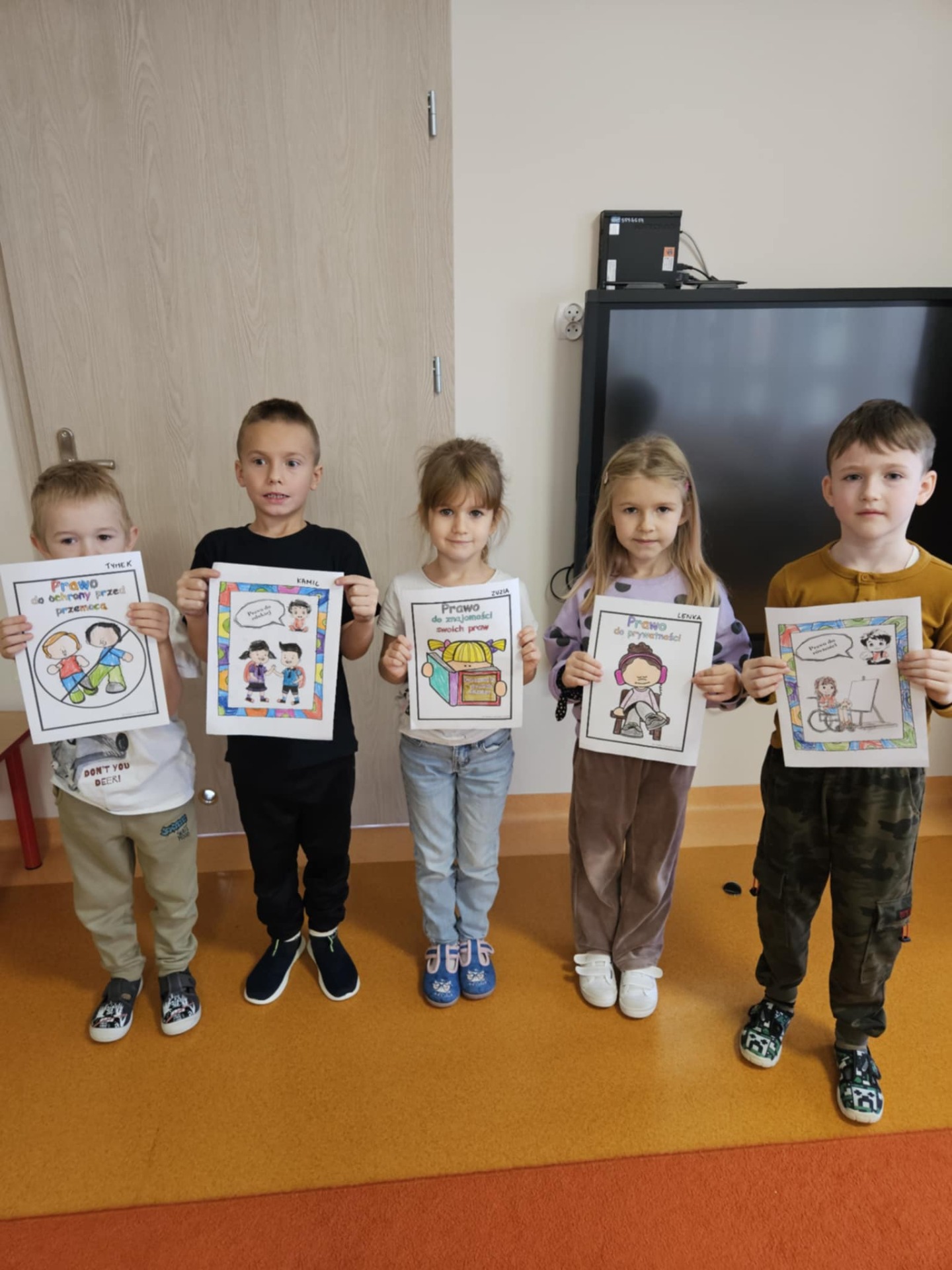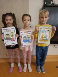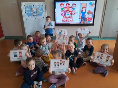 20 listopada obchodziliśmy w przedszkolu Dzień Praw Dziecka. Z tej okazji przedszkolaki obejrzały filmik edukacyjny o "Prawach dziecka", na podstawie którego dzieci dowiedziały się jakie mają prawa i podjęły próbę odpowiedzi na pytanie "Co to znaczy, że dzieci mają prawa?". Poprzez zabawy, tańce i piosenki budzące i wyzwalające spontaniczną radość u dzieci, kształtowano świadomość posiadania własnych praw, a także uświadamiano dzieciom, że w ich otoczeniu są osoby, do których mogą zawsze zwrócić się o pomoc.