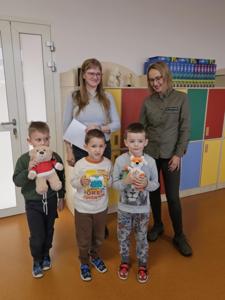 Z okazji obchodów "Dnia Pluszowego Misia" chętne przedszkolaki wzięły udział w konkursie plastycznym na "Najpiękniejszego pluszowego misia" wykonanego w formie przestrzennej. Oczywiście wszystkie prace były wyjątkowe i bardzo trudno było wybrać te najładniejsze. Jury w składzie - przewodnicząca Rady Rodziców Pani Katarzyna Jurenc oraz przedstawiciel Nadleśnictwa Mirosławiec, wyłoniło z każdej grupy trzech laureatów. Wyniki przedstawiają się następująco: