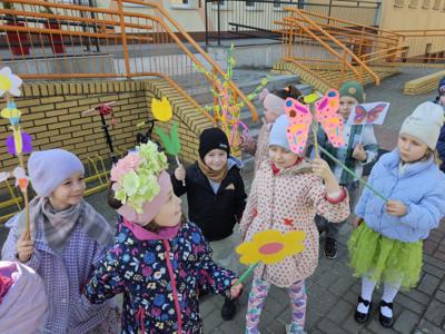Pierwszy dzień wiosny w naszym przedszkolu obchodziliśmy w radosnej i kolorowej atmosferze. Dzieci z niecierpliwością oczekiwały tego dnia, który obfitował w różnorodne atrakcje i zabawy nawiązujące do nadejścia nowej pory roku.