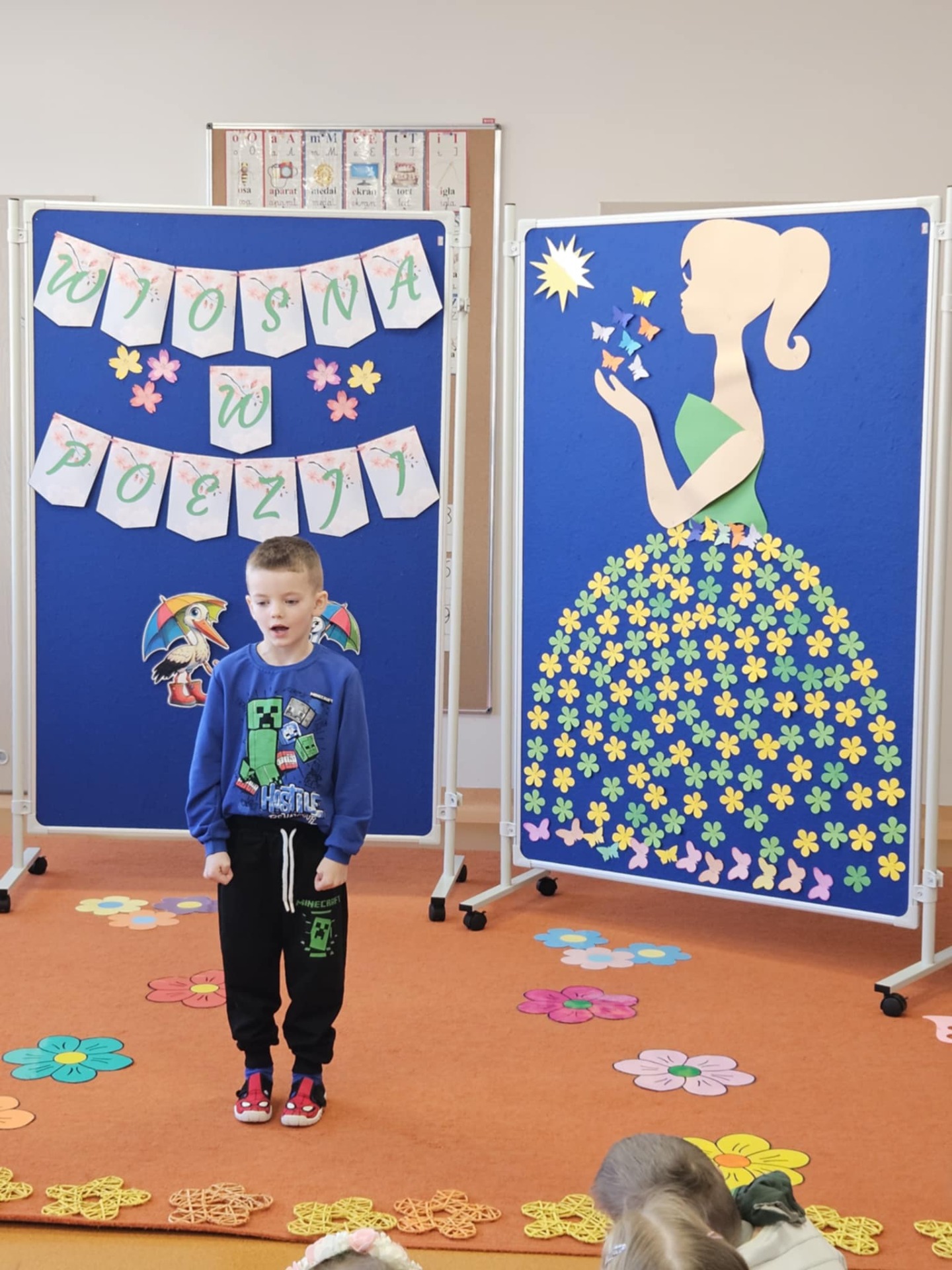 Obchody rozpoczęły się od konkursu recytatorskiego pt. „Wiosna w poezji”, którego celem było rozwijanie zainteresowania poezją, doskonalenie umiejętności recytatorskich oraz kształtowanie wrażliwości na piękno języka. W konkursie wzięły udział dzieci z różnych grup wiekowych, prezentując wiersze o tematyce wiosennej. Dzieci kolejno wychodziły na scenę i recytowały przygotowane utwory. Niektóre dodatkowo wzbogaciły swoje występy gestykulacją i rekwizytami, co dodało im wyjątkowego uroku.